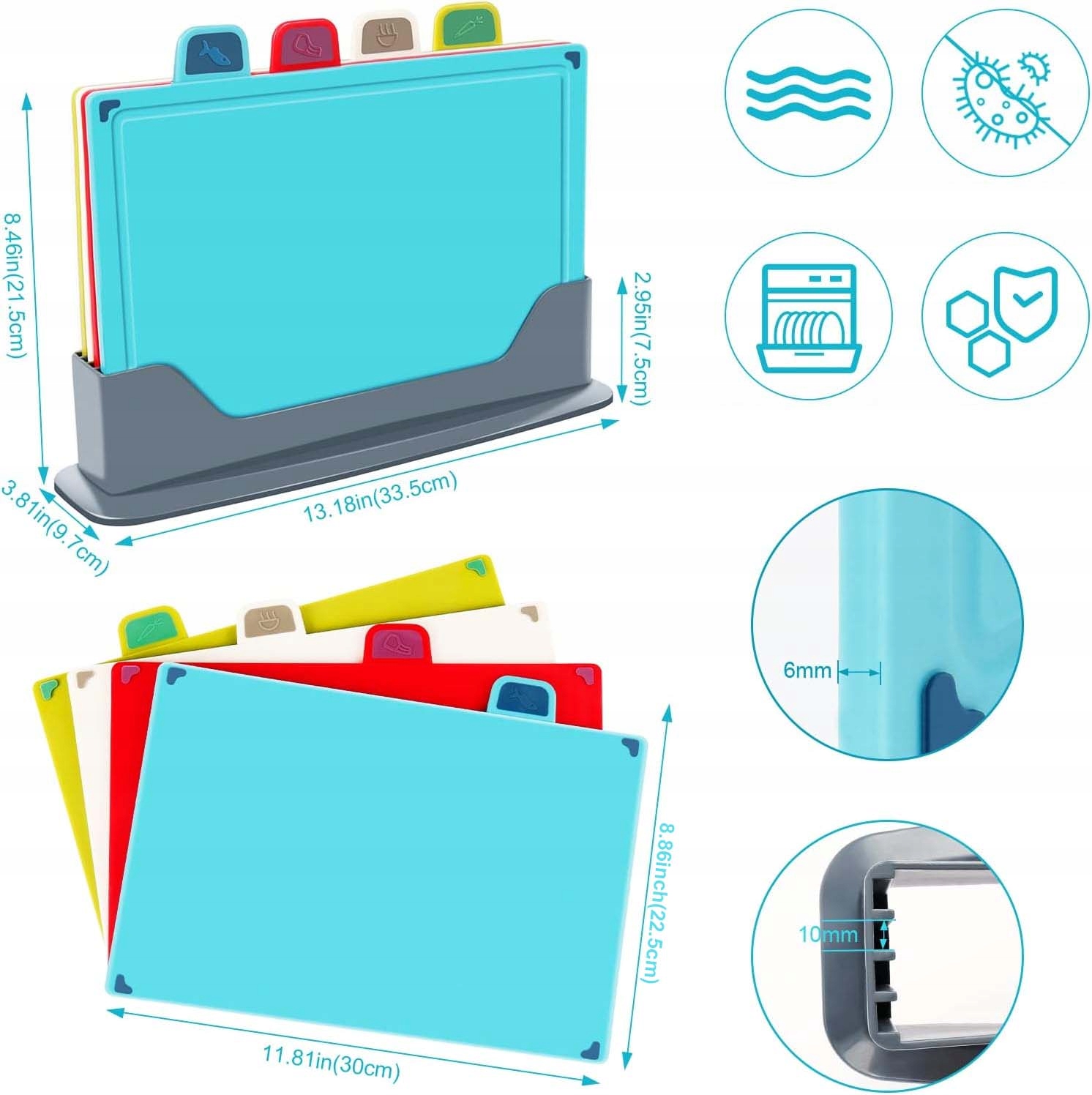 Пластиковые доски из 4 частей, красочная, разноцветная, кухонная доска, портативная, анти-скользящая, антибактериальная доска для резки, безопасная, без BPA, портативный, нетоксичный, антибактериальный