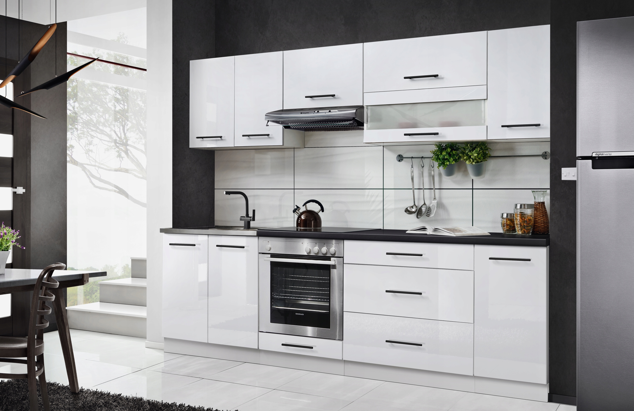 МЕБЛІ БІЛА КУХНЯ З ШАФОЮ ВЕРХ ГЛЯНЦЕВИЙ МАТ