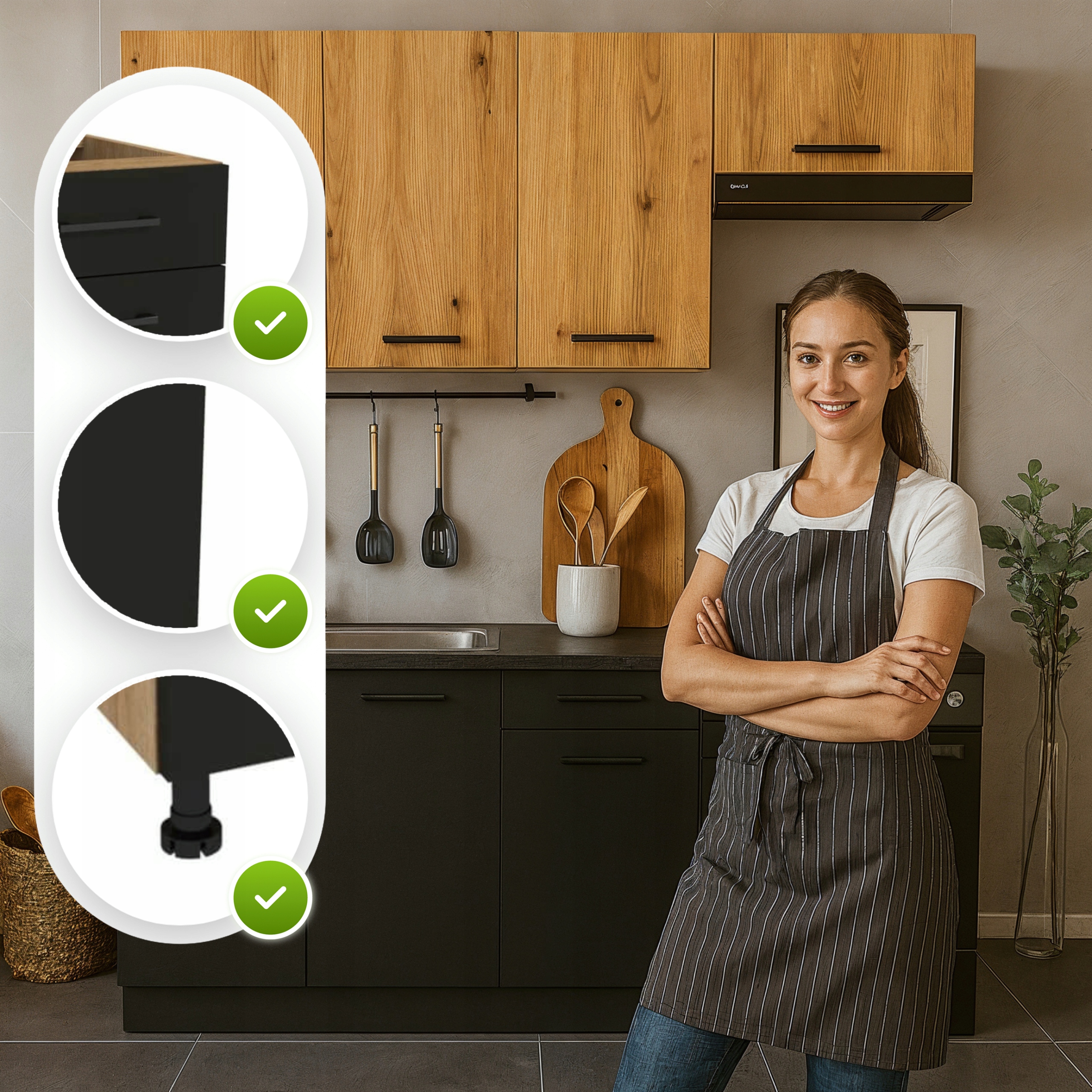 ✨ Кухонная мебель Модульный комплект мебели на заказ Черный/Дуб Evoke MODERN 170