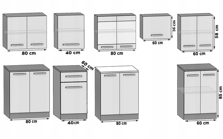 Пожалуйста, проверьте точные размеры отдельных шкафов, чтобы убедиться, что представленный комплект точно подойдет к вашей комнате.