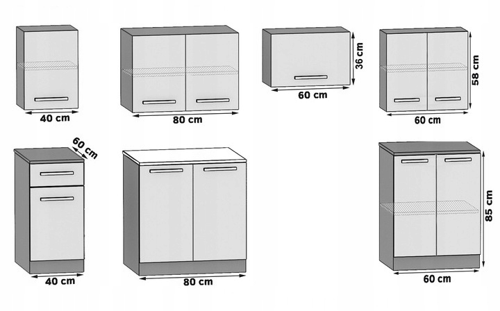 Пожалуйста, проверьте точные размеры отдельных шкафов, чтобы убедиться, что представленный комплект точно подойдет к вашей комнате.