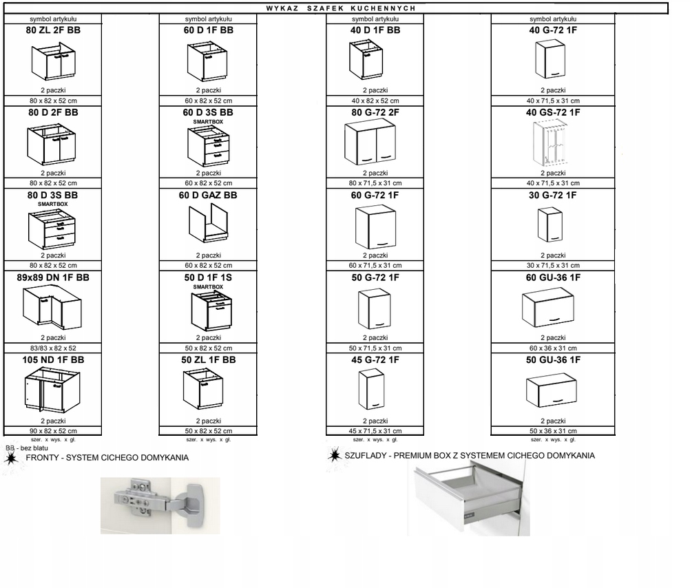 46 элементов на выбор от (в т.ч. (в том числе шкафы с выдвижными ящиками, угловые шкафы, подвесные шкафы, отдельно стоящие шкафы для встраиваемых духовок, посудомоечных машин и холодильников) удовлетворит каждого пользователя. Для более требовательных есть подвесные шкафы XL высотой 90см.