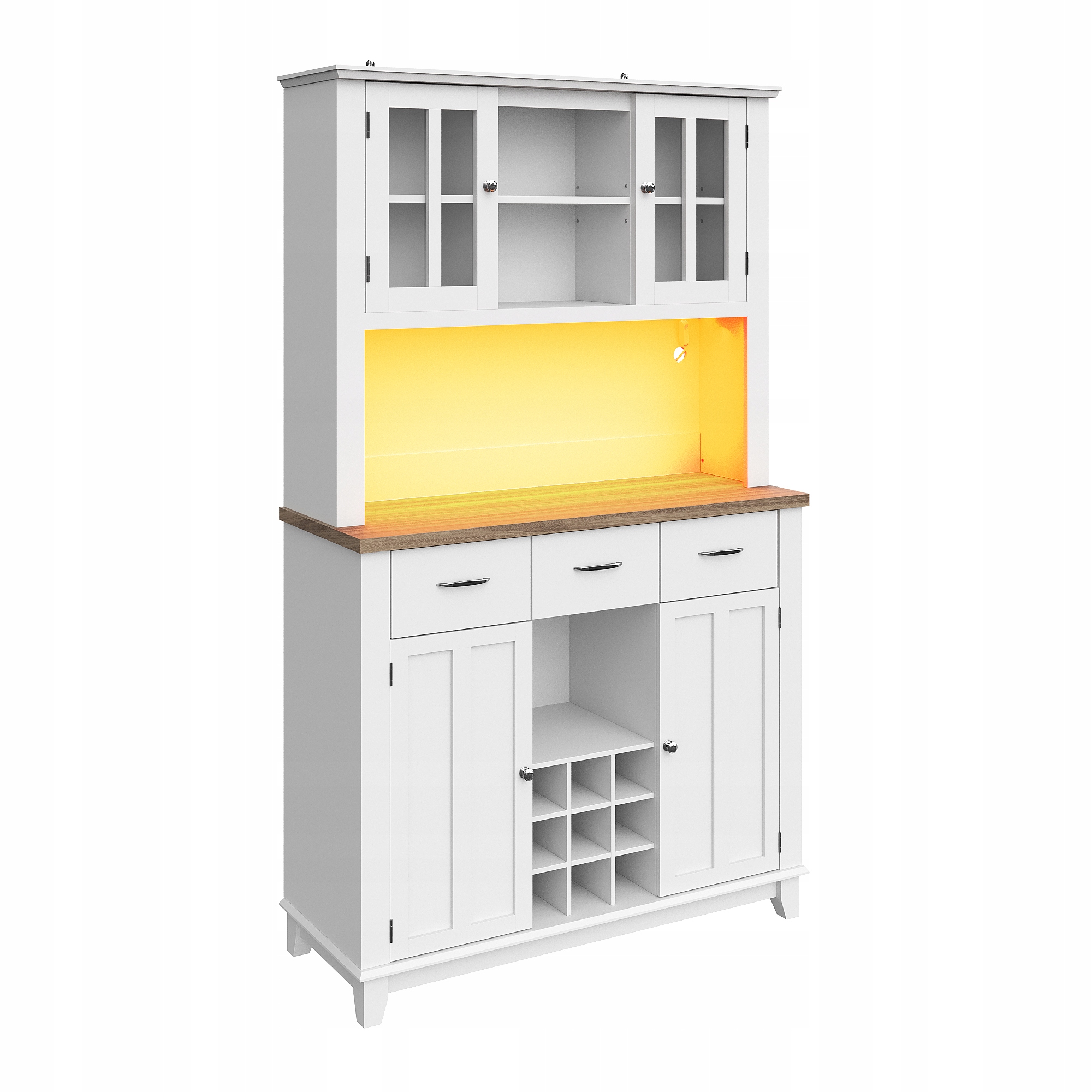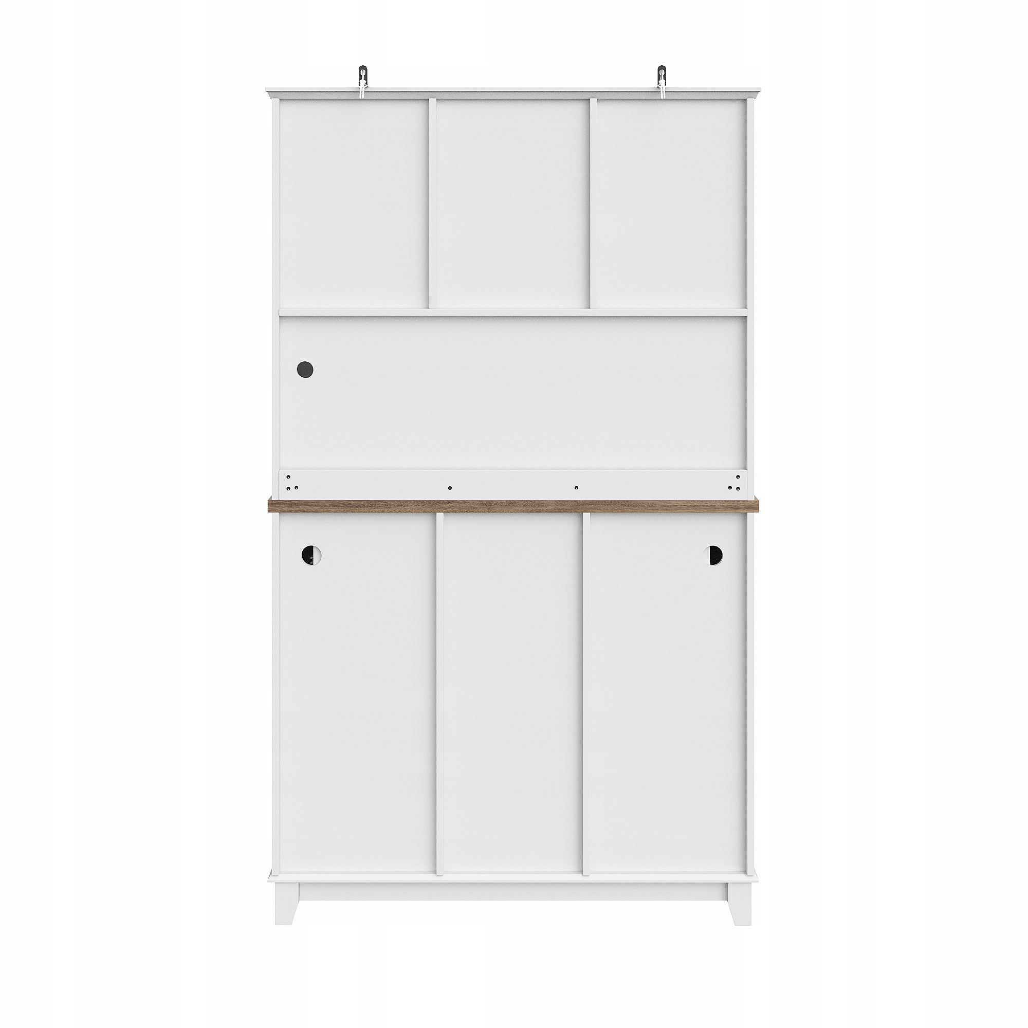 У этого высокого кухонного шкафа есть 6 отсеков на вершине для хранения столовых приборов, бокалов для вина и другой кухонной утвари, а также крупного мастерского стола и шкафа ниже для хранения ощущений, кофейных машин, тостеров и других кухонных приборов. В середине есть винная подставка, которая может разместить 9 бутылок вина, чтобы удовлетворить потребности места для хранения на кухне. Ручки для ящиков изготовлены из алюминиевого сплава, который является сильнее и долговечнее.