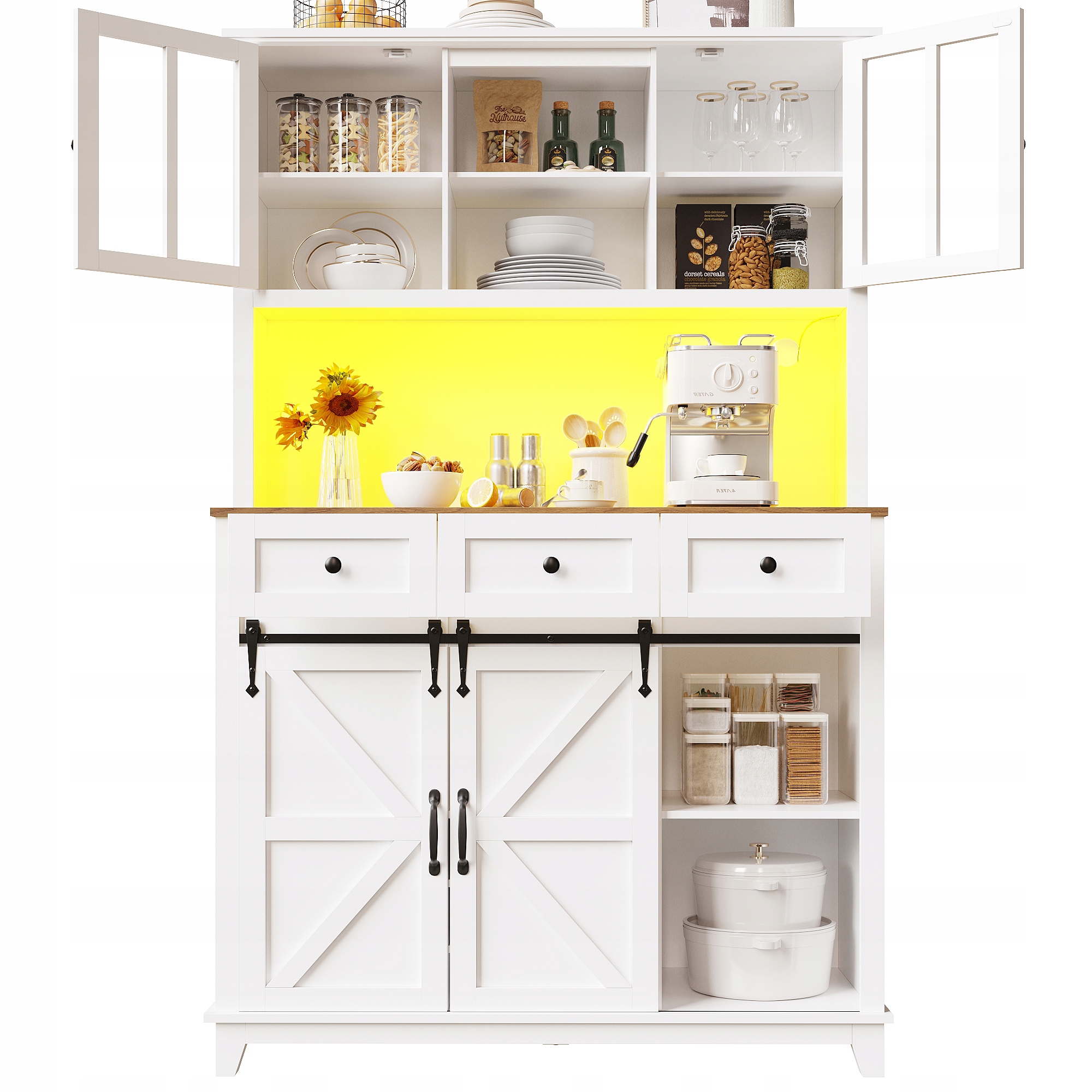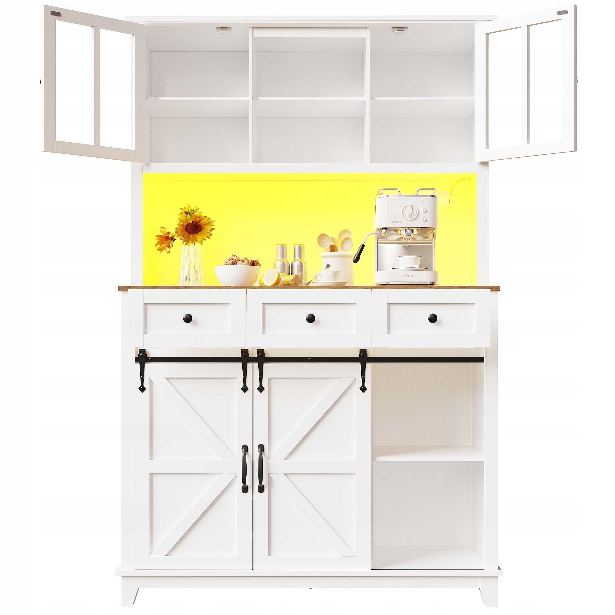 Изысканный дизайн и высококачественные материалы: Изготовлен из плиты МДФ высокой плотности, с элегантными стеклянными дверцами и алюминиевыми ручками, тщательно выполненными с вниманием к деталям, идеально вписывается в современный стиль интерьера.