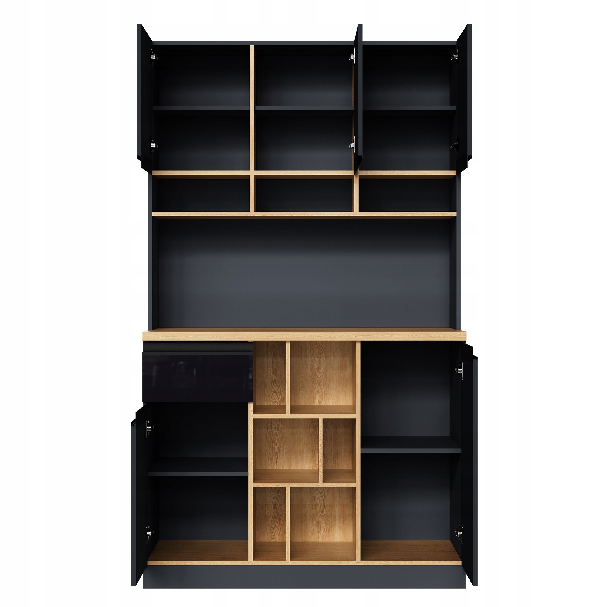 - - антрацитовый корпус с глянцево-черными дверцами и матово-черными алюминиевыми ручками делает этот высокий шкаф украшением любой современной кухни.
