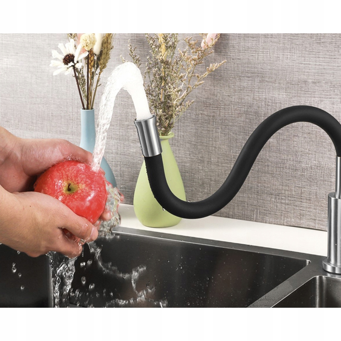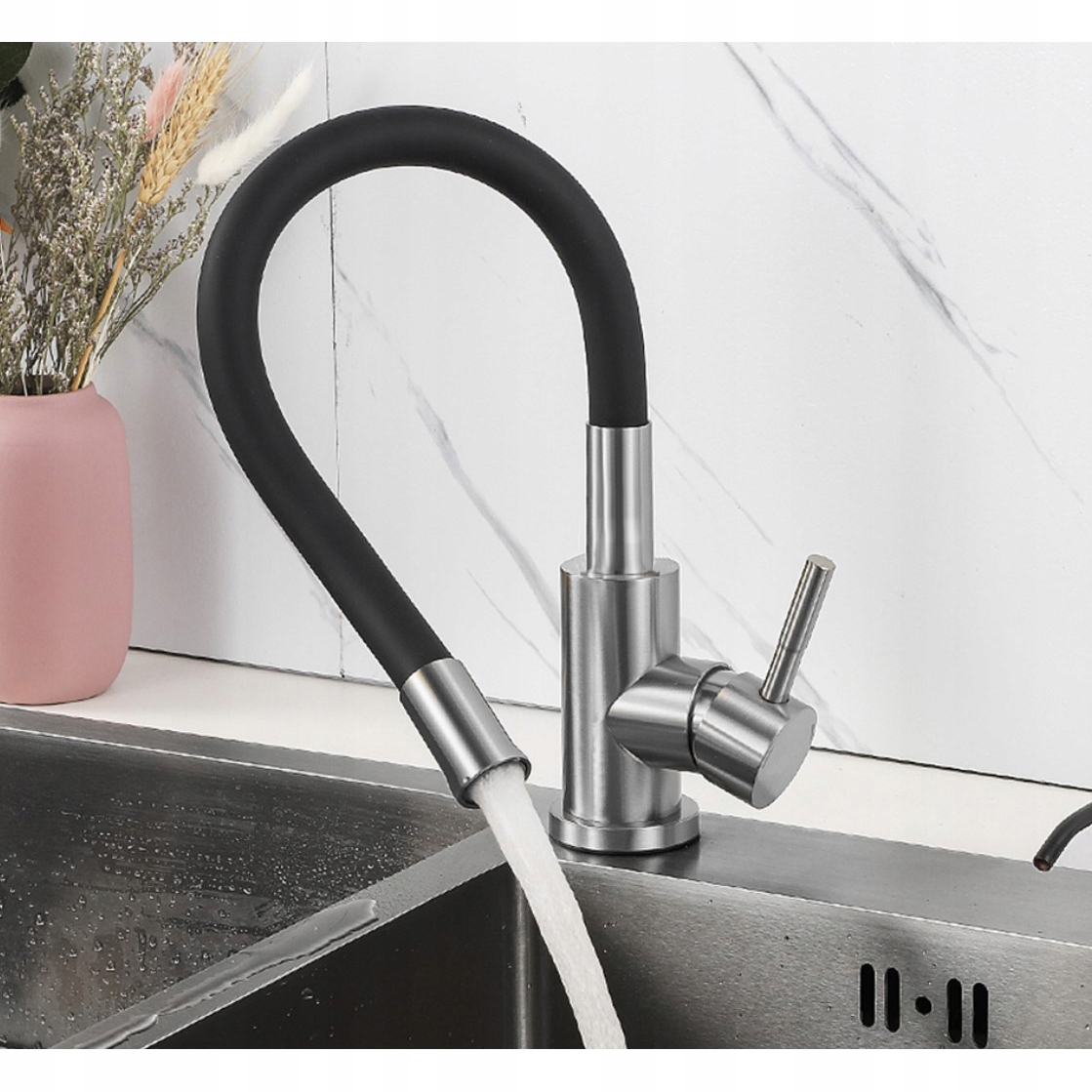 - Гибкий вращающийся носик 360 градусов - позволяет любые настройки стяжки в пределах 360 градусов, создавая комфорт. Вы сопоставите его с высокой точностью до высоты и диапазона потока воды. Это позволяет легко налить воду, например, в большой горшок. Гибкий носик также является отличным решением, когда у нас нет места для многокачественной раковины. Это также отлично подходит для раковины, которые расположены под окном; Это не будет проблемой при открытии.