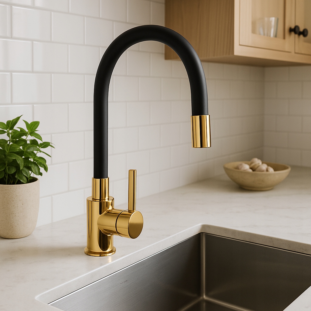 Кухонная батарея стоящая подвижное гибкое носик с гибким черным золотом