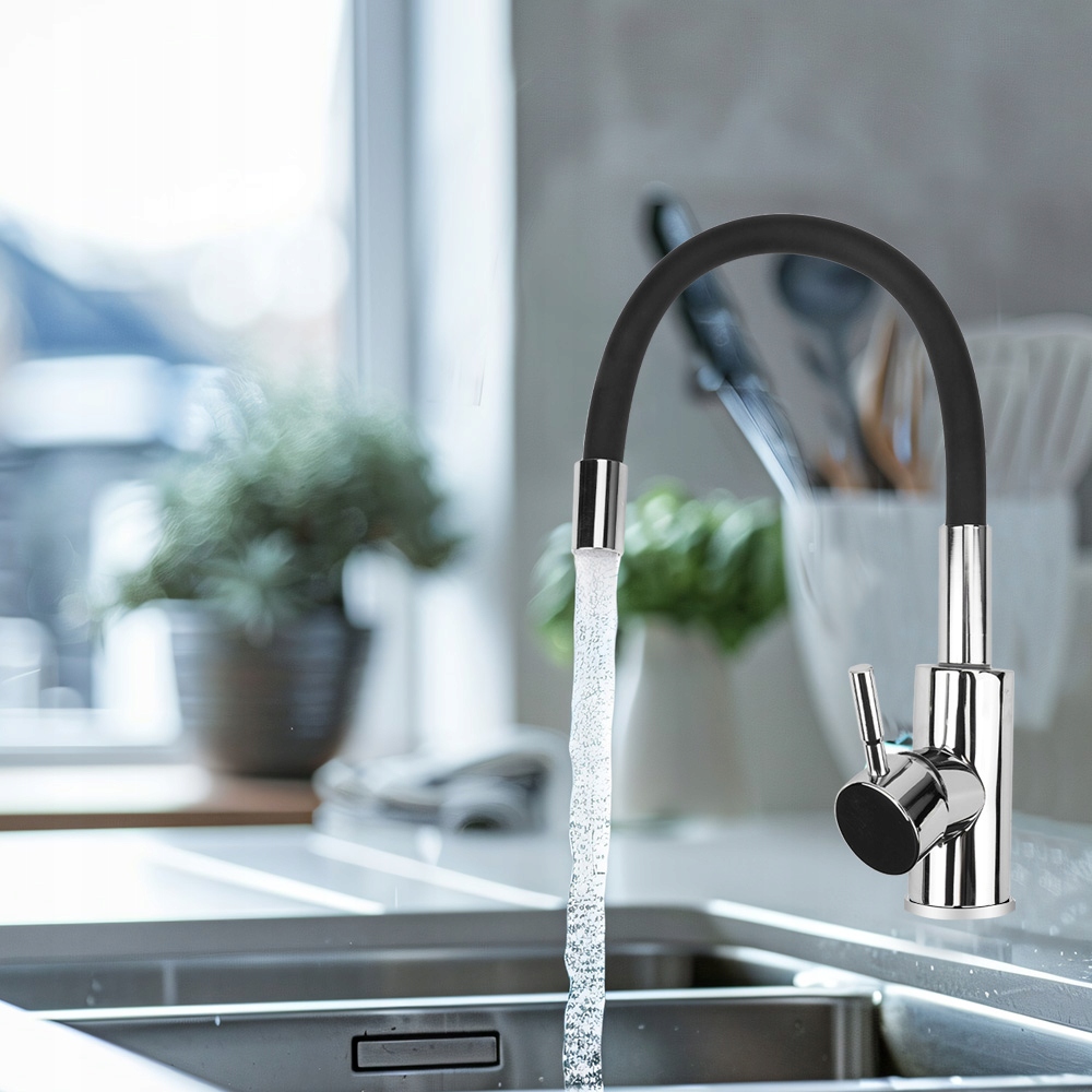 Черная и серебряная кухонная батарея, современный и простой дизайн, идеально адаптируется к стилю вашей кухни.