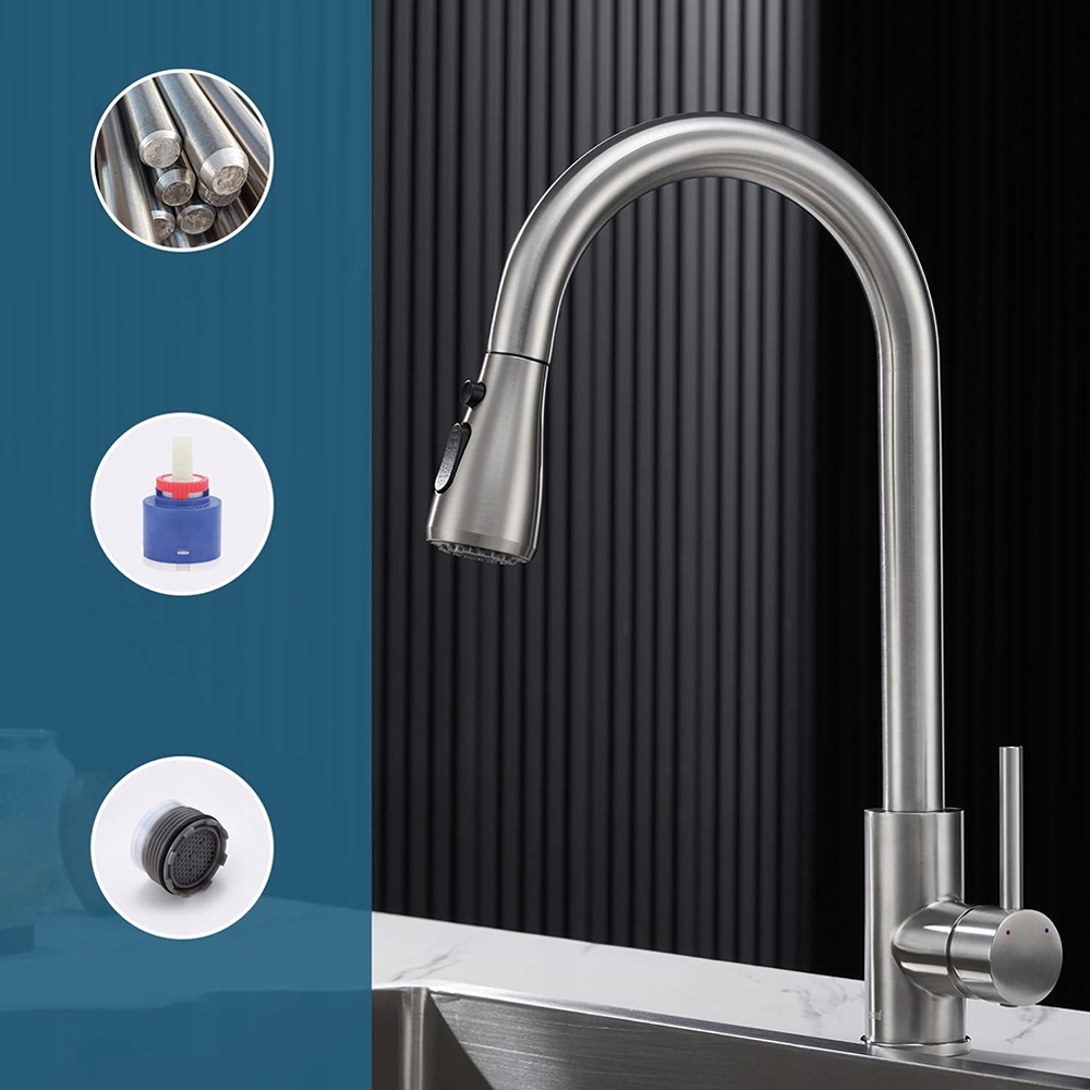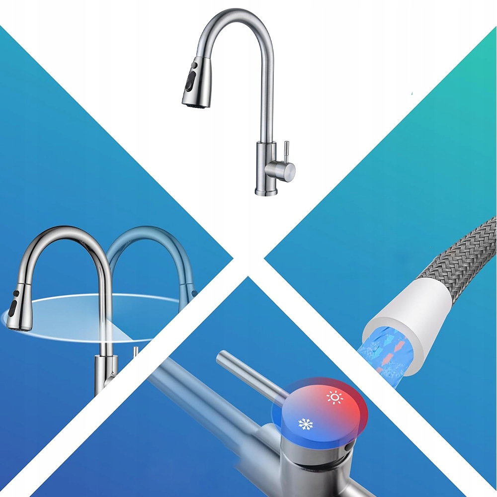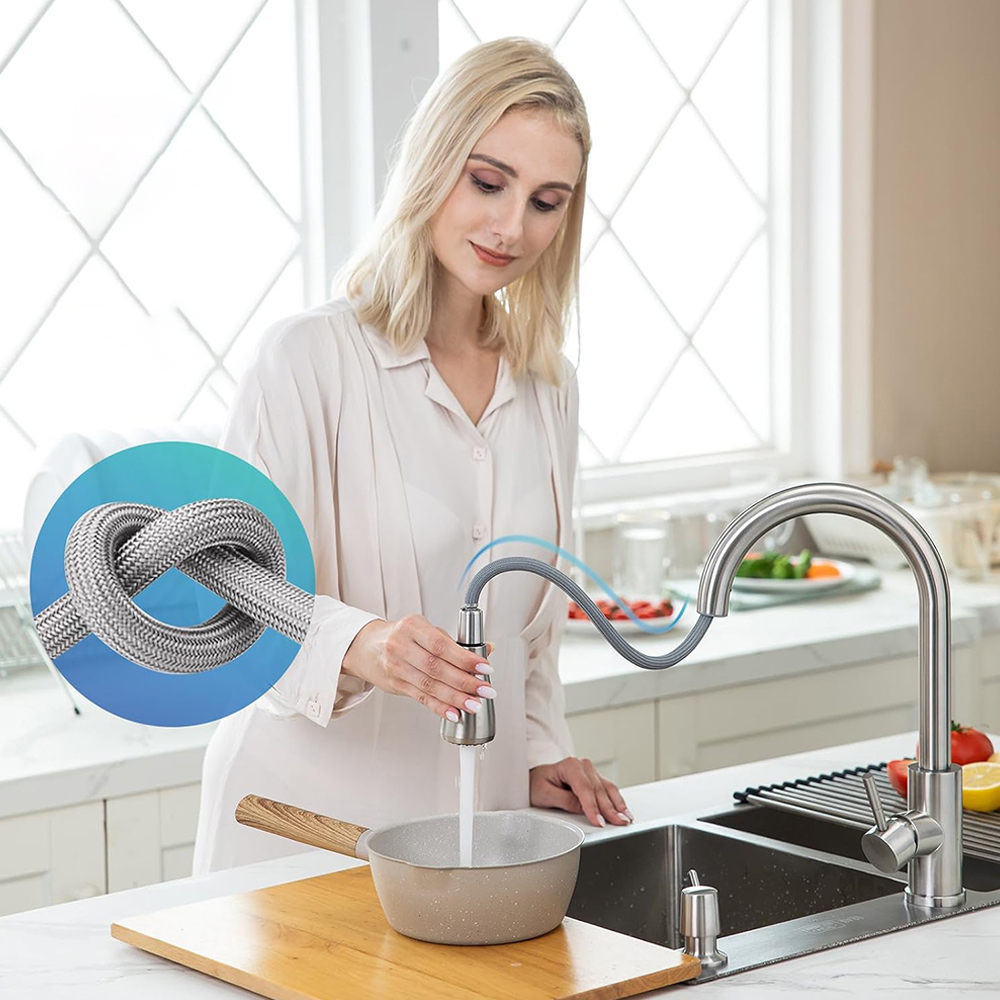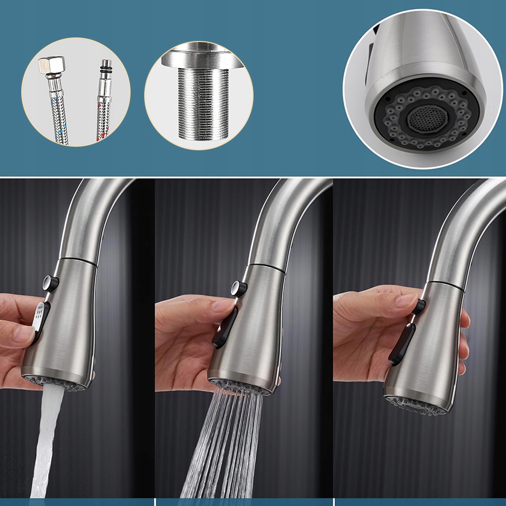 -Растяжение кухонного крана изготовлен из высококачественной из нержавеющей стали 304, которая устойчива к старению, высокое давление и стеснение.