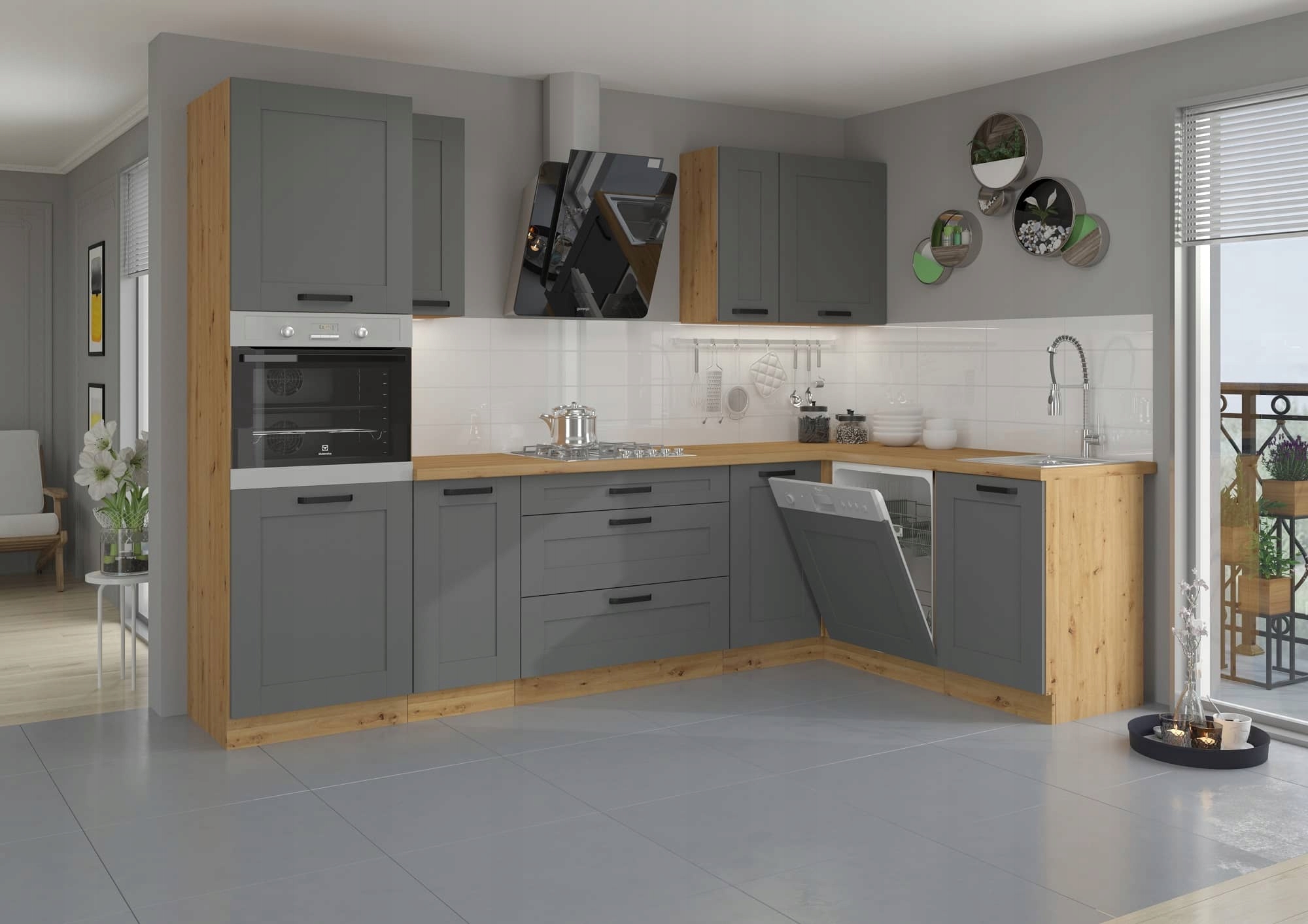 Угловой кухонный гарнитур 285х170см ASTI серый/дуб