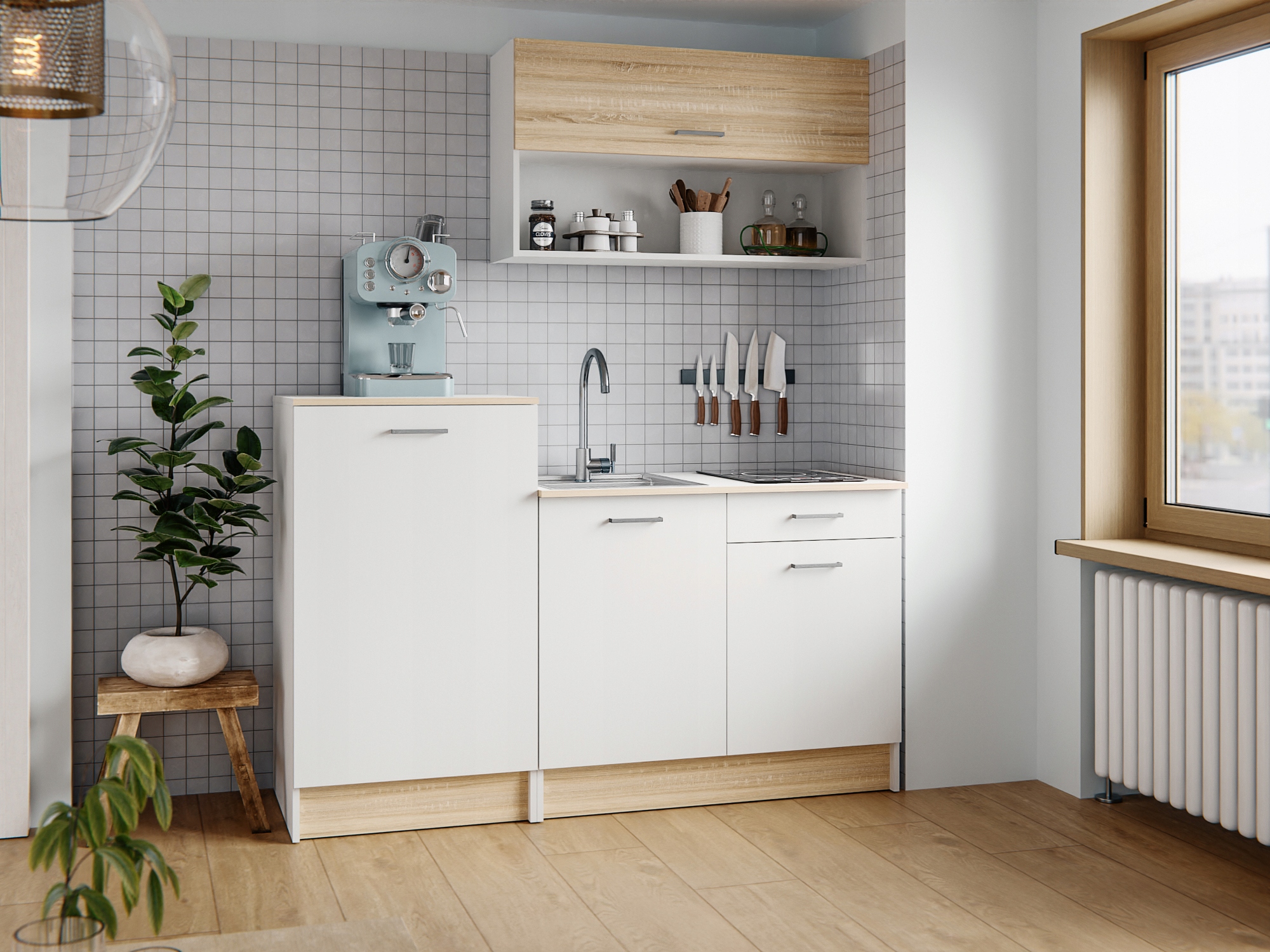 Кухонная мебель SINGLE ROUTE - в цвете; белый матовый/дуб сонома