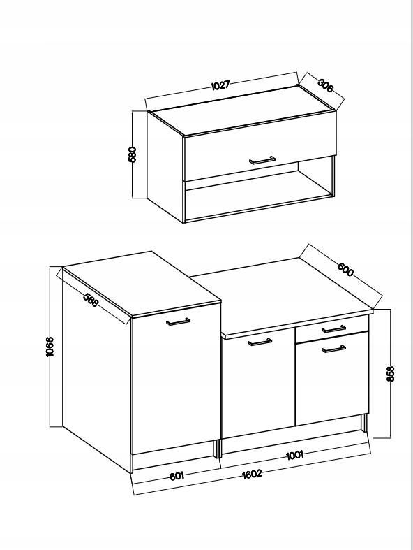 <ул>столешница - мебельный щит толщиной 16 мм, секции 100 см и 60 см, белая, кромка столешницы цвета дуба Сонома