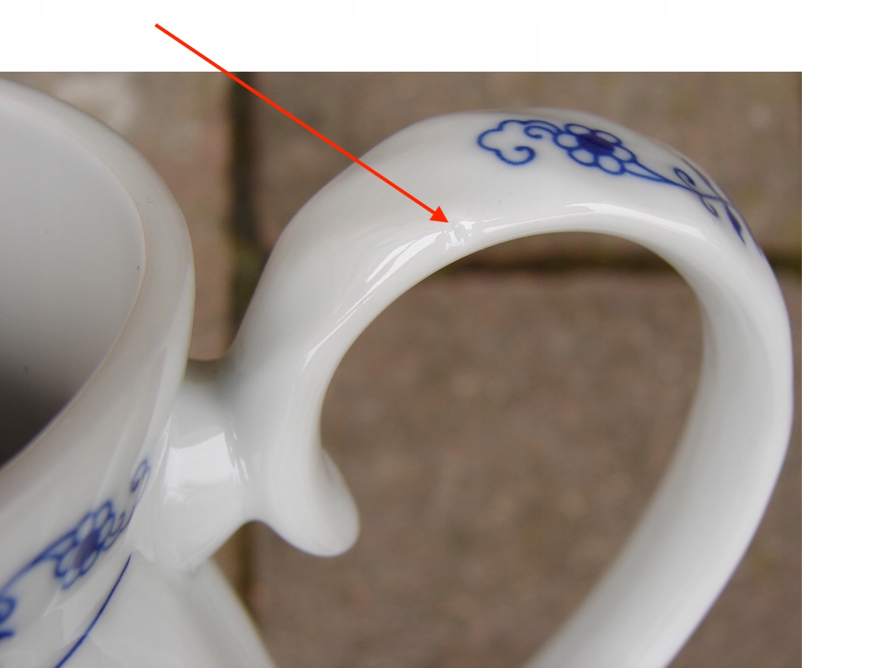 - Товар в рабочем состоянии, хорошая сохранность, без трещин и сколов. В одном месте на ручке кувшина имеется производственный дефект, не влияющий на внешний вид и использование изделия. Место дефекта показано красной стрелкой при увеличении.