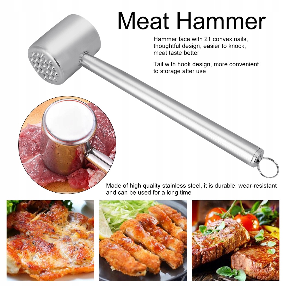 Оплачивая «Двухсторонний молоток для мяса из нержавеющей стали, кухонный инструмент», вы можете быть уверены, что данное изделие из каталога «Щетки для мяса и тортов» будет доставлено из Польши и проверено на целостность. В цене товара, указанной на сайте, учтена доставка из Польши. Внимание!!! Товары для Евросоюза, согласно законодательству стран Евросоюза, могут отличаться упаковкой или наполнением.