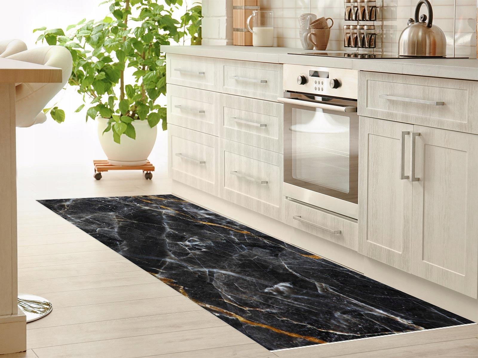 Защитный коврик для кухни для кухни черный мрамор 234x78