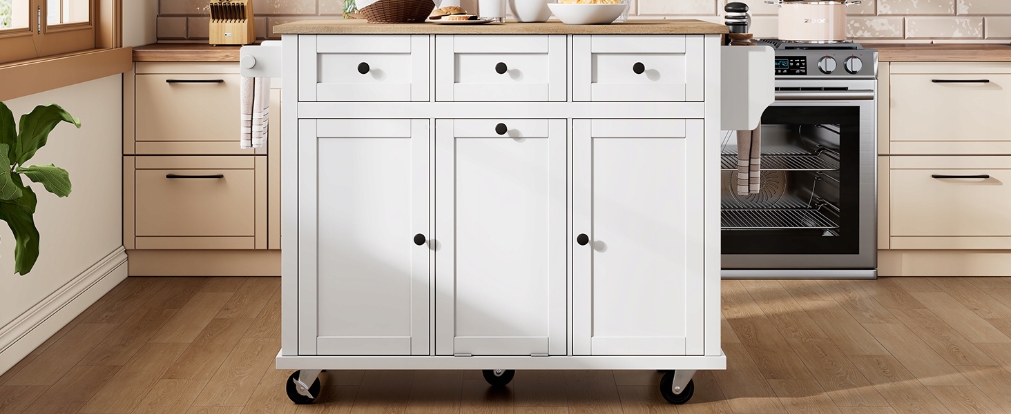 Изученная рабочая зона: На этом кухонном острове есть рабочая стойка для скольжения и складывания (112*44,6-74,6 см). Если вы хотите подготовить роскошный праздник, просто распространите его, и кухонный остров сразу же обеспечивает огромную рабочую зону. После использования вы можете легко сложить его, благодаря которой ваша маленькая кухня выглядит аккуратно в мгновение ока. Рабочая стойка этого кухонного острова изготовлена из твердого материала и может поддерживать до 50 кг.