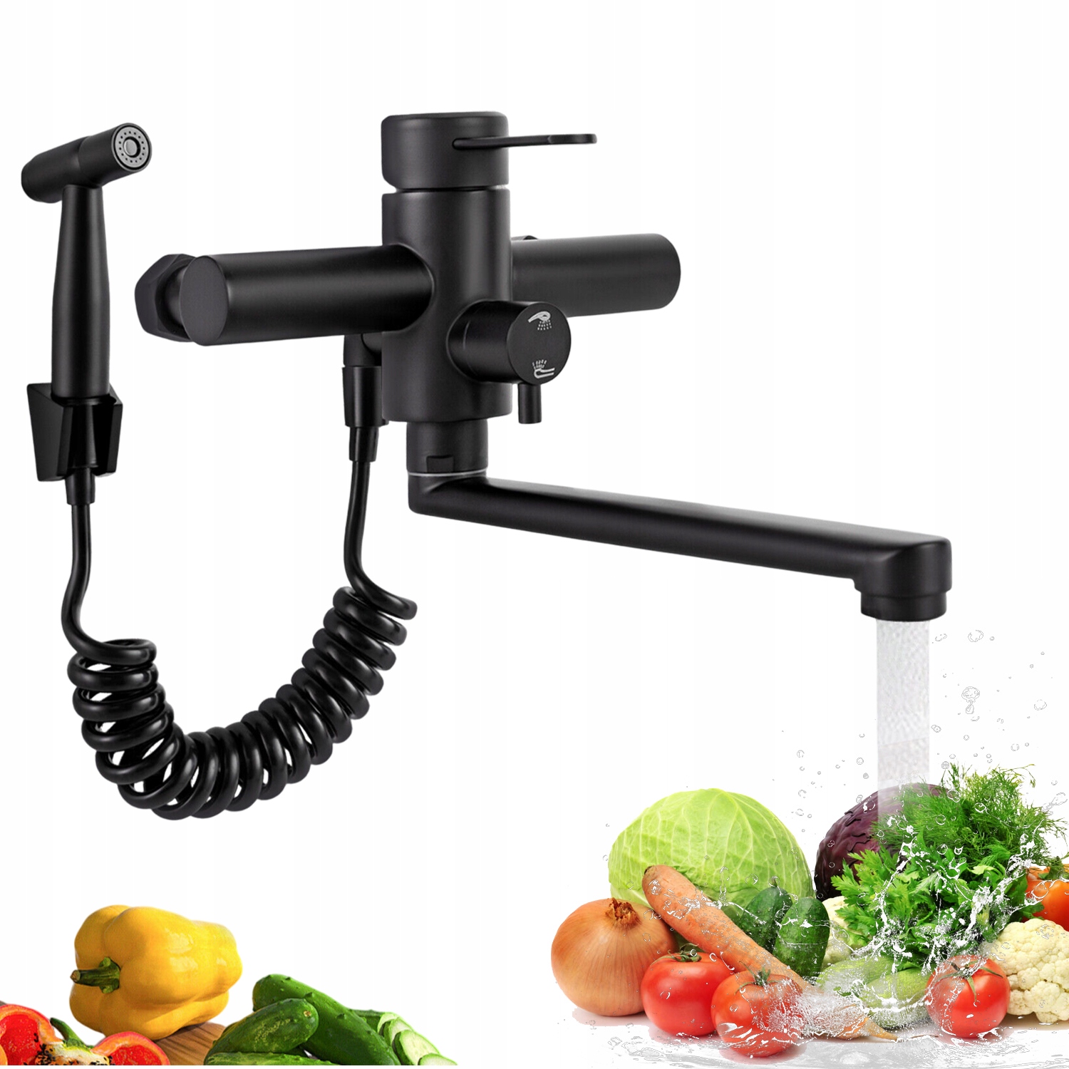 КУХОННЫЙ Смеситель НА СТЕНЕ НАСТЕННЫЙ КУХОННЫЙ FAPER ИЗОСИК STRONG ЧЕРНЫЙ