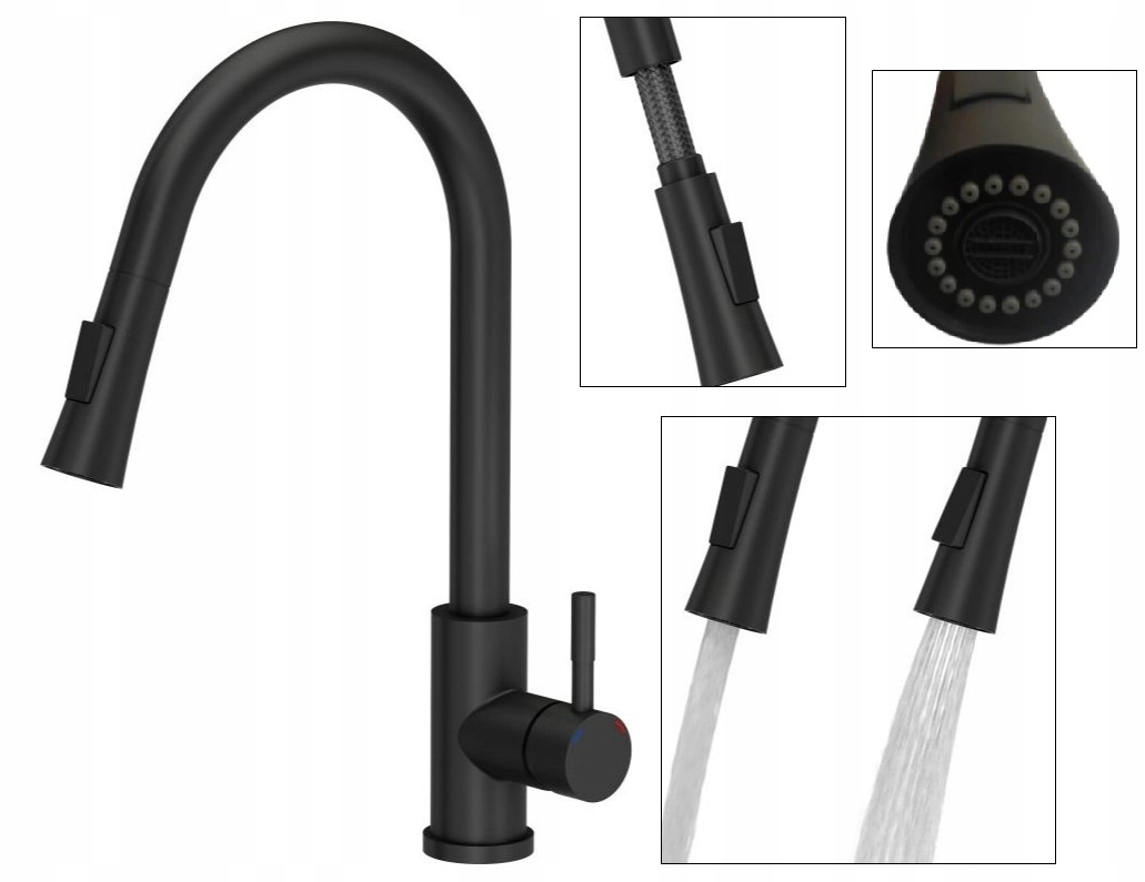 КУХОННИЙ МІКЕР JULIA MATTE BLACK ВИСУВНИЙ ВИСОК