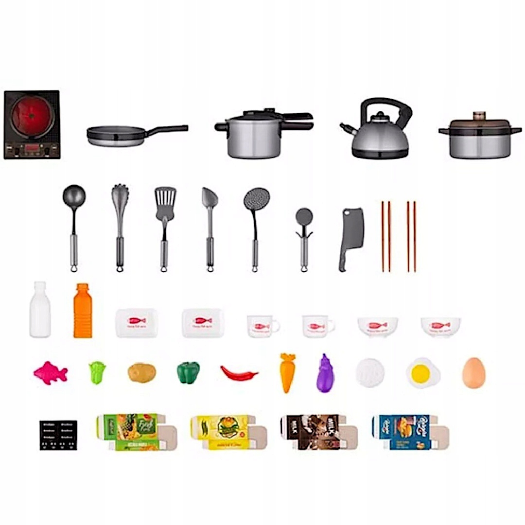 ⭐ Красивый набор кастрюль, идеально подходящий для кухни маленького повара, развивающий его навыки ручного труда и позволяющий готовить множество различных блюд. Он оснащен набором кастрюль со съемными крышками и сковородой с крышкой. У чайника также есть съемная крышка и подвижный свисток, благодаря которому вы можете наполнить его водой. Приготовление пищи облегчит варочная панель и прилагаемые кухонные принадлежности, такие как ложка для макарон или лопатка для сковороды. В набор также входят основные овощи и другие ингредиенты для блюда, которые разнообразят веселье. Готовые блюда можно подавать на тарелках и пиалах, входящих в комплект.