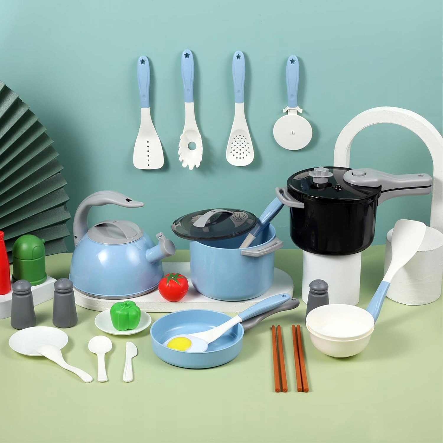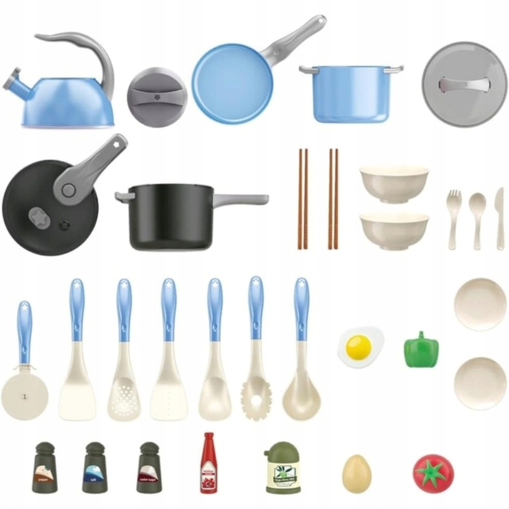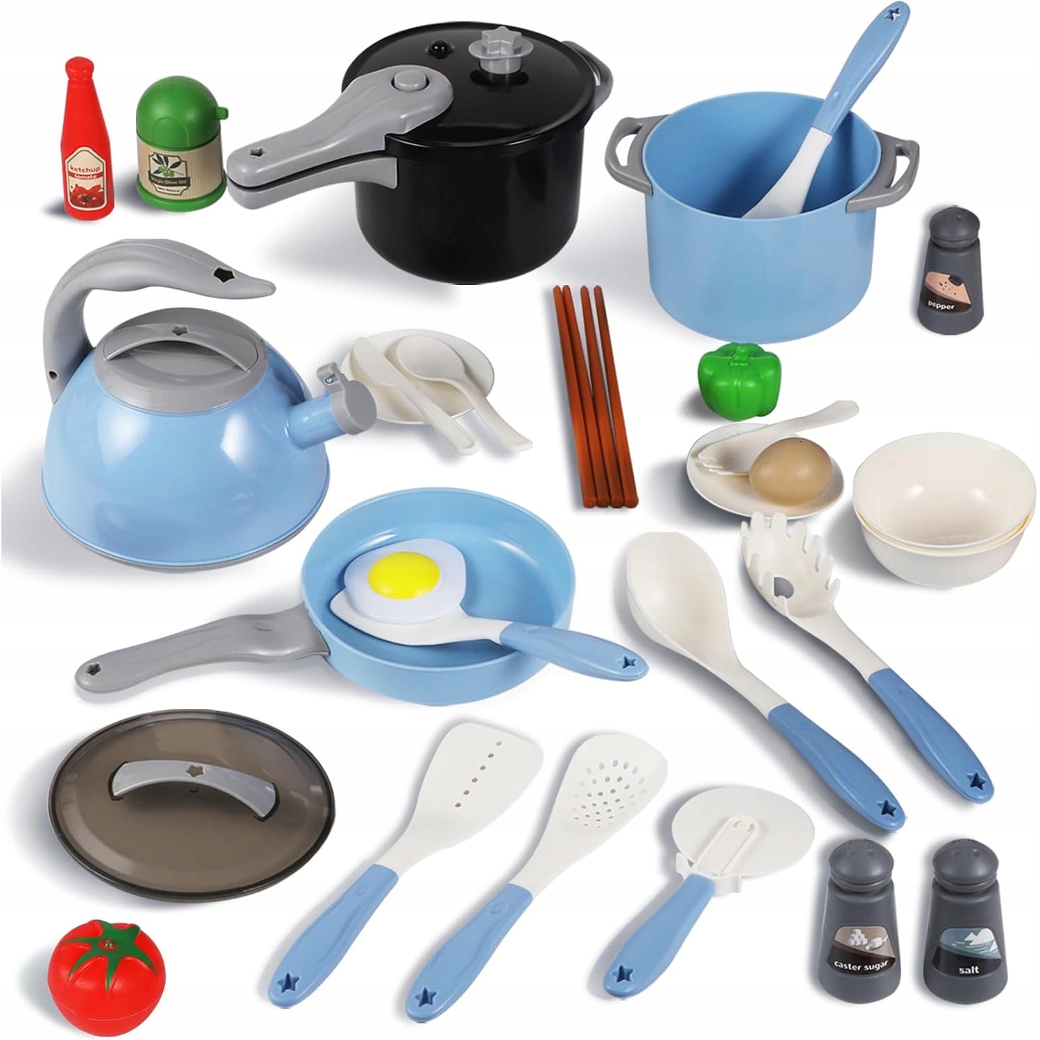 красивый, красочный и в то же время реалистично выглядящий кухонный набор с множеством аксессуаров - это Идеальный подарок для каждого маленького ребенка, который любит веселье на кухне. Руководство позволит ему приготовить много разных блюд. Он оснащен набором горшков со съемными крышками и сковородой, которая также подходит для горшка. Чайник также имеет съемную крышку и подвижный свисток, так что вы можете наполнить его водой. Приготовление пищи будет способствовать прикрепленной кухонной посуде, такой как ложка пасты или плечо. Набор также включает в себя основные специи и ингредиенты блюд, которые будут диверсифицировать веселье. Приготовленные блюда могут быть поданы на тарелках и мисках, включенных в набор
