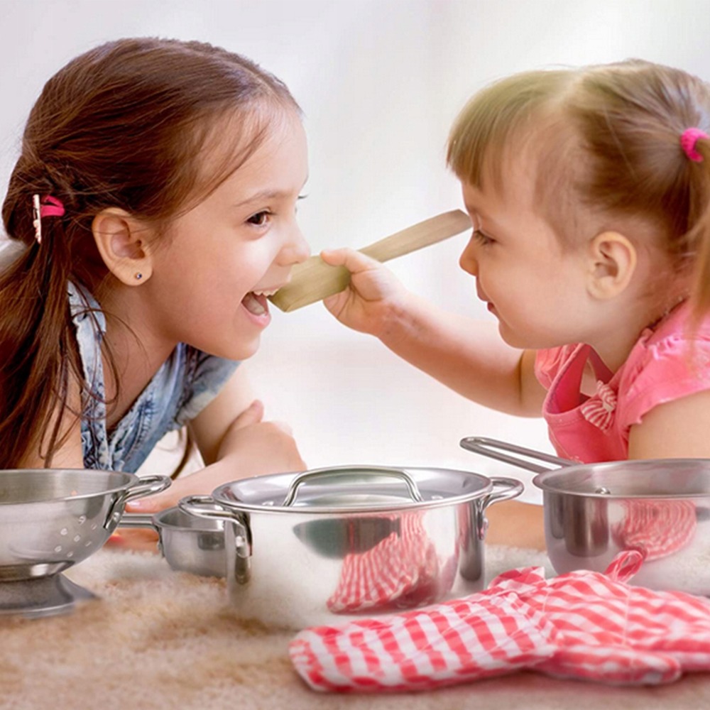 Весь набор выполнен из нержавеющей стали и блестяще имитирует настоящие кухонные кастрюли. Отличное и продолжительное развлечение, сочетающее в себе развлечение и обучение.