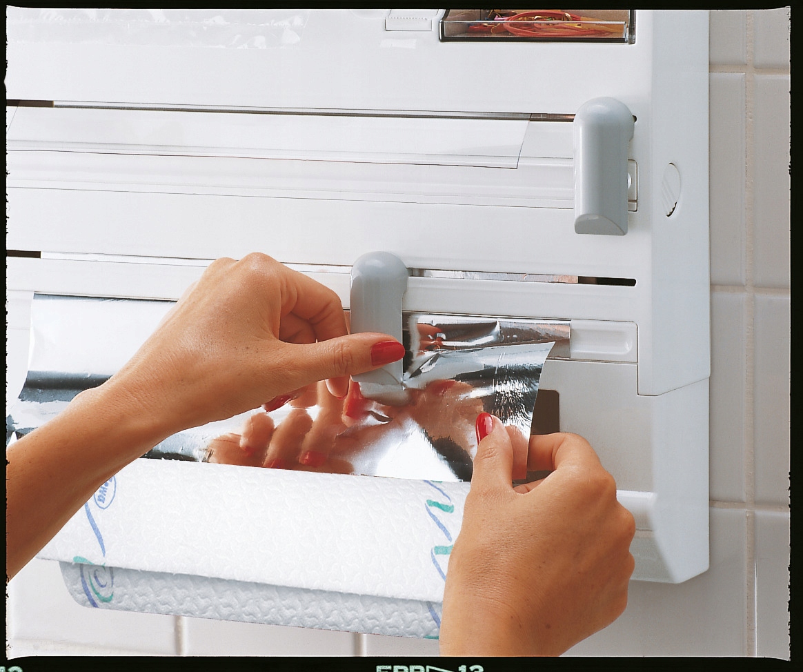 Благодаря диспенсеру для бумаги и фольги Leifheit бумага, алюминиевая фольга и пищевая пленка будут всегда под рукой.