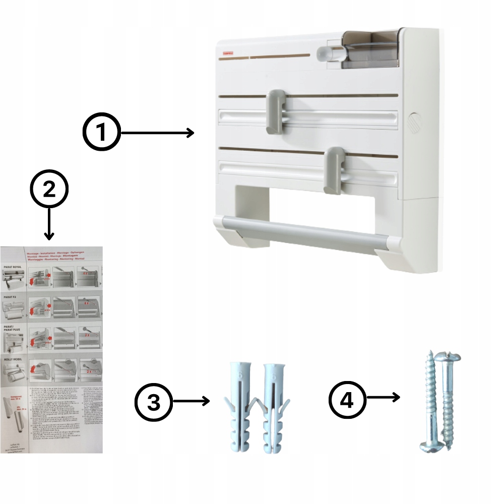 <р>1. LeifheitКормушка Parat ComfortLine <р>2. Руководство по эксплуатации и сборке на польском языке <р>3. 2 монтажные заглушки, размер «6» <р>4. 2 винта для крепления питателяЭто значит, что вам не придется покупать дополнительные элементы, все уже включено в комплект.