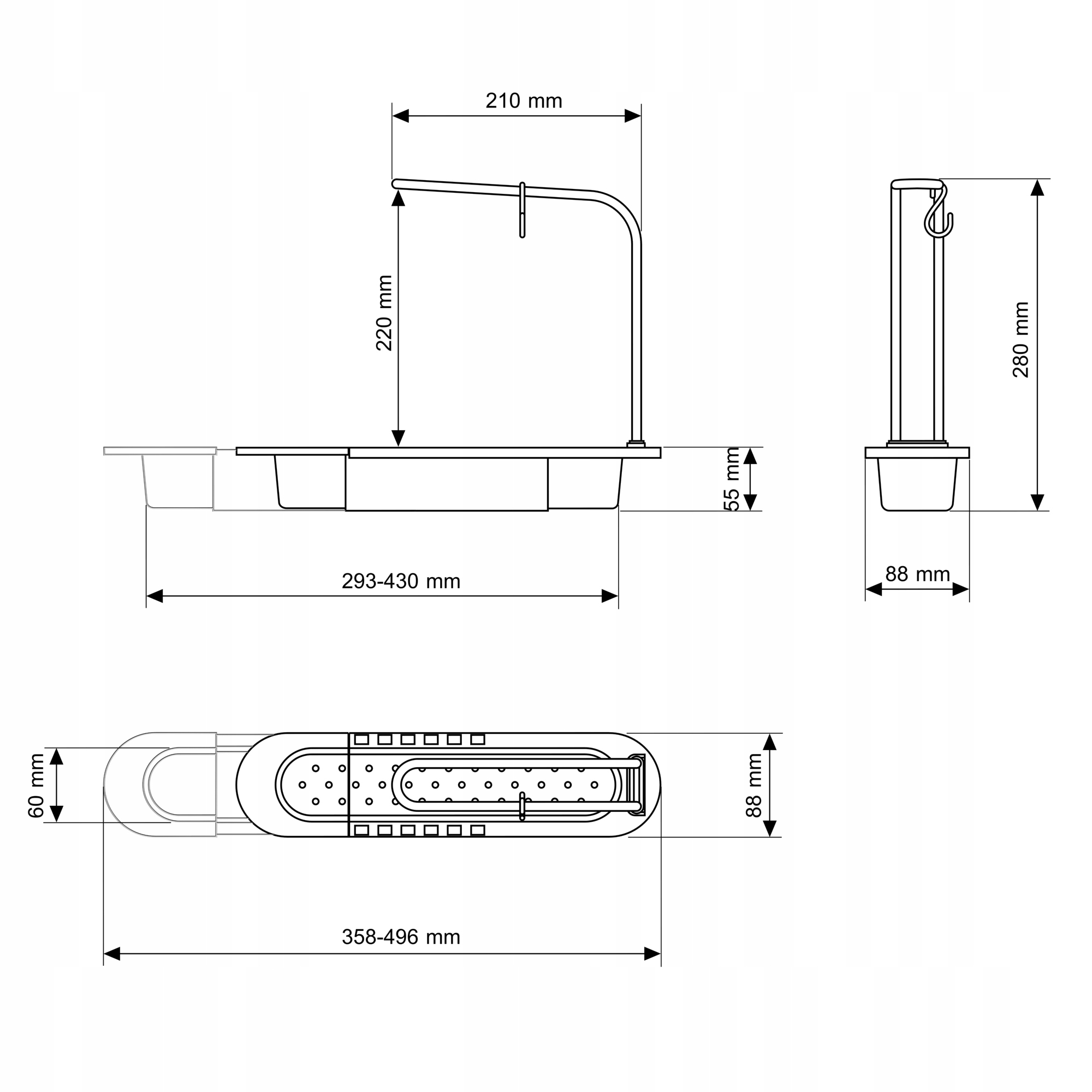 Благодаря регулировке органайзер подходит под большинство раковин, представленных на рынке.