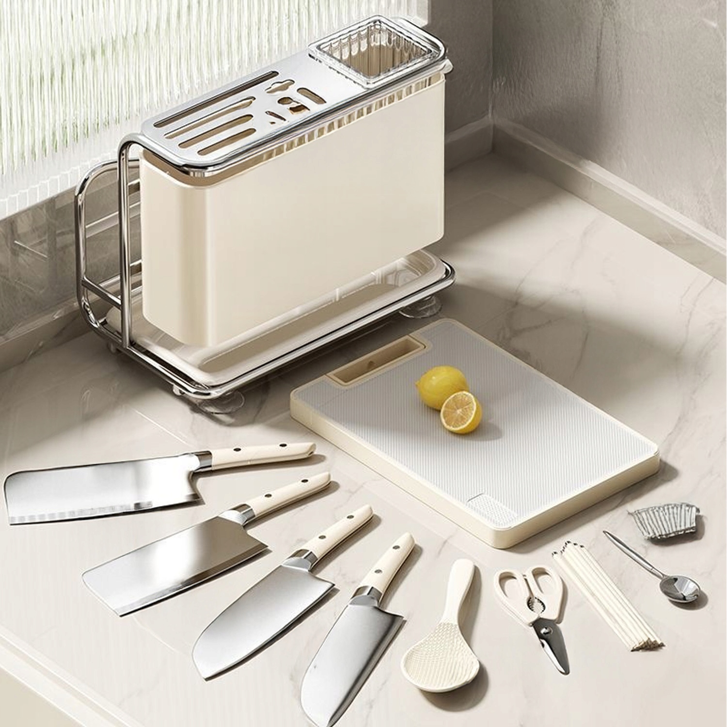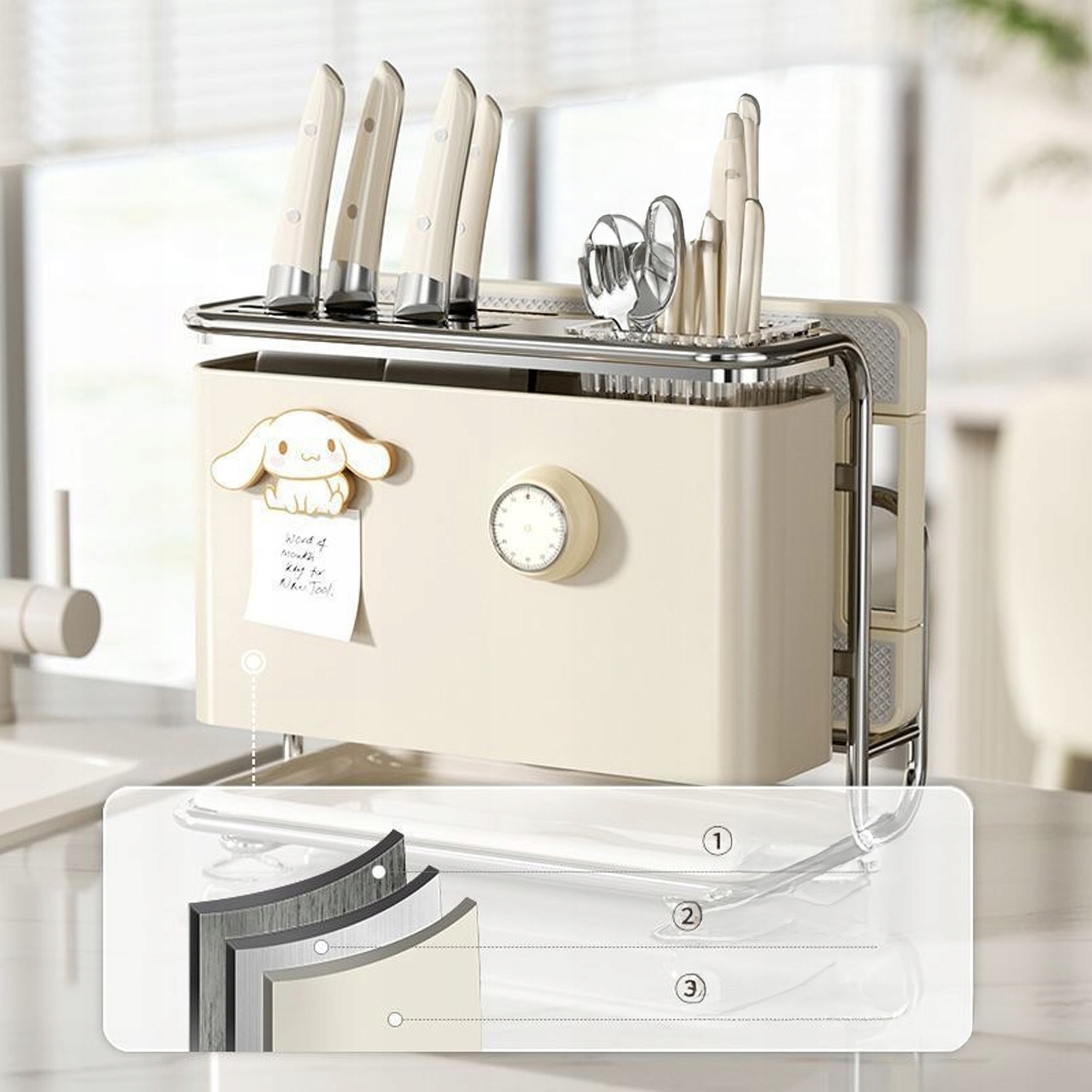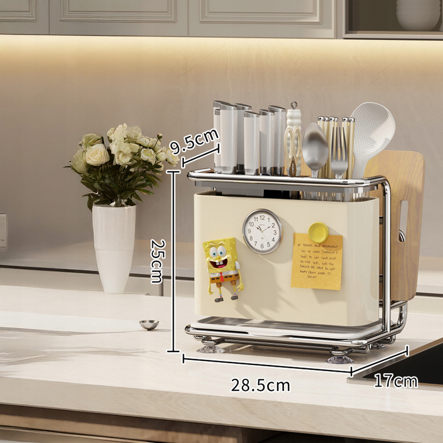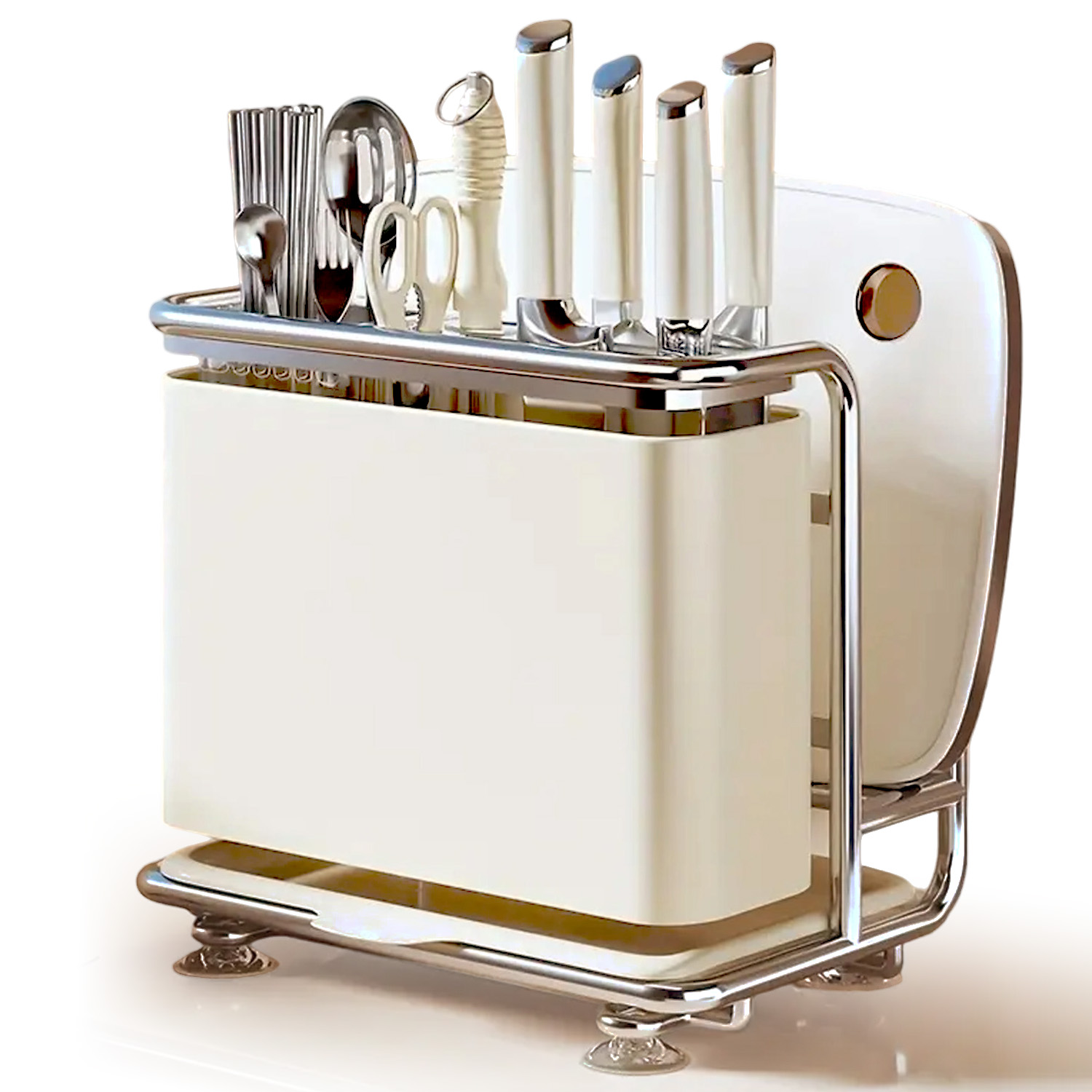 Увеличьте порядок и функциональность вашей кухни с помощью нашего многофункционального организатора! 🏆 Идеально подходит для любителей кулинарии, студентов и людей с ограниченным пространством. Благодаря этому вы сохраните идеальную организацию ножей, досок, палочек и других кухонных аксессуаров.