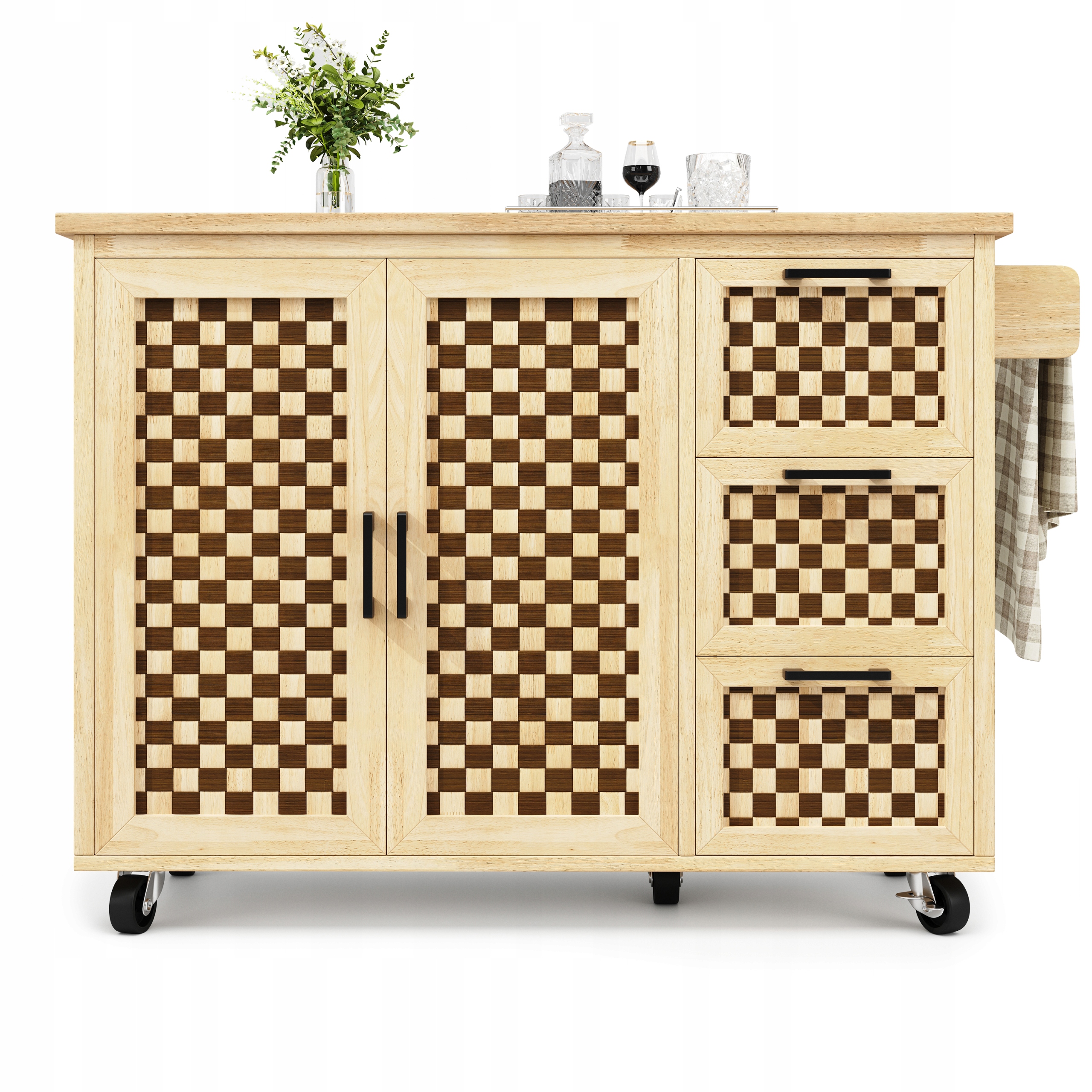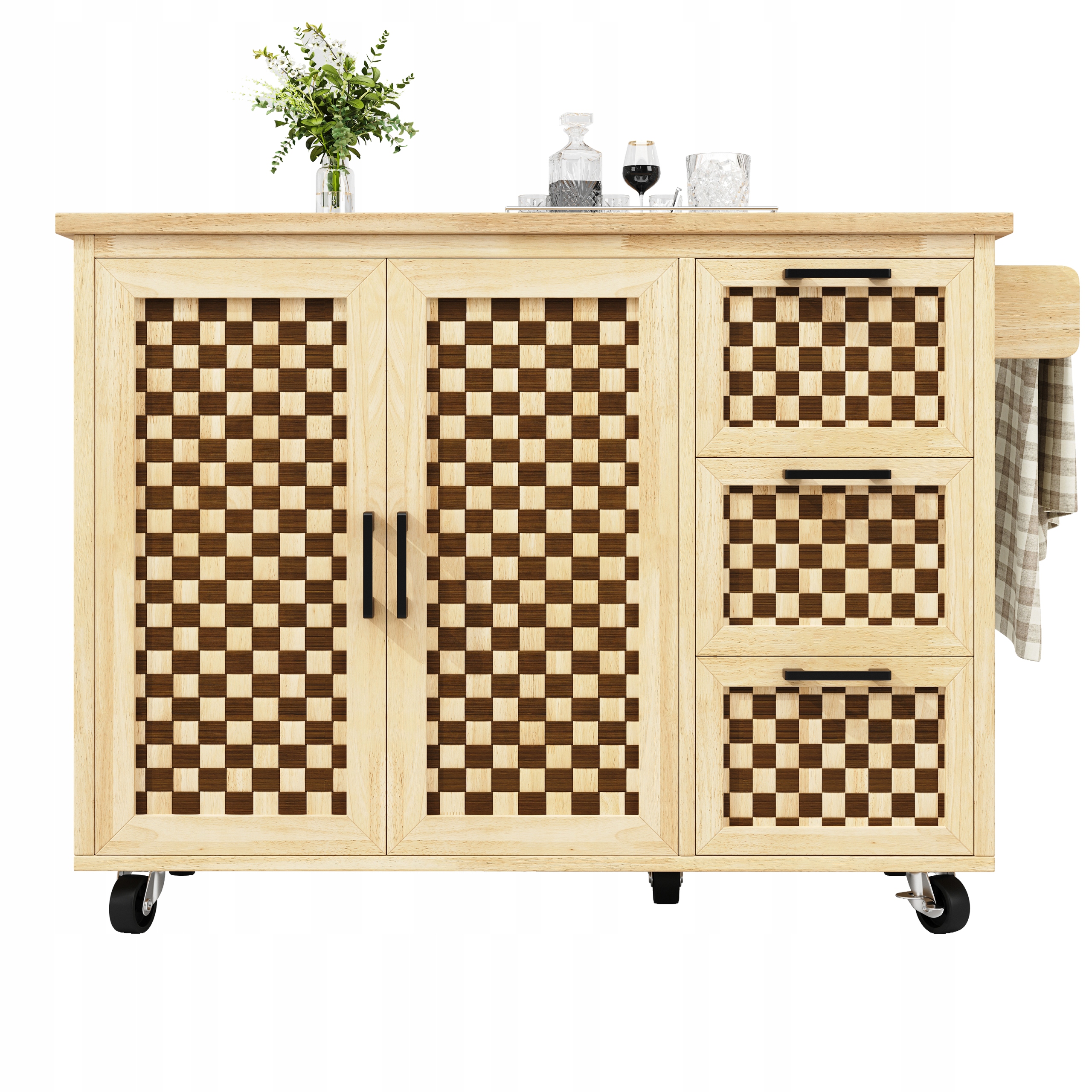 Эстетичный дизайн: поверхность шкафа под дерево в сочетании с двухцветным шахматным узором создает освежающий визуальный эффект с деревенским шармом. Он привлекает внимание, где бы вы его ни разместили, идеально вписываясь в кухню, столовую, гостиную, балкон, сад и многие другие помещения.