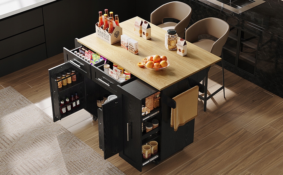 Современный кухонный остров с раскладным столом и интеллектуальным хранением (110 × 46-74 × 90,5 см)-Стиль-масштаб в белом/ черном h2>
