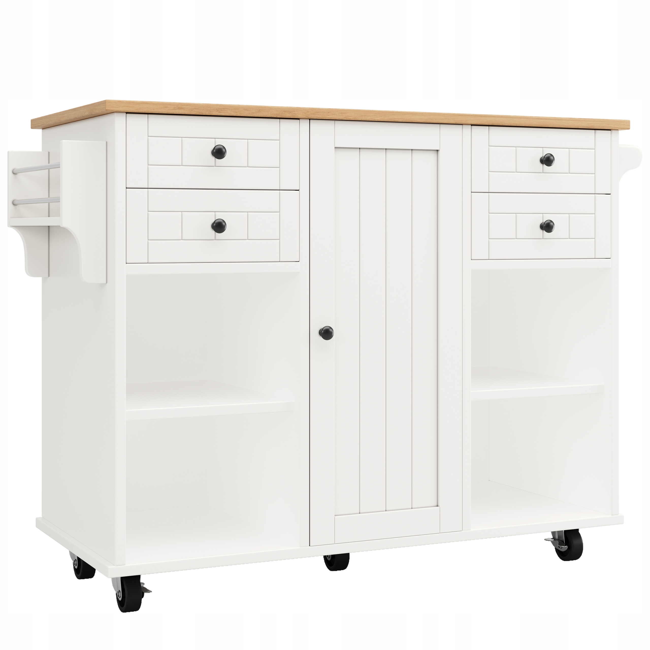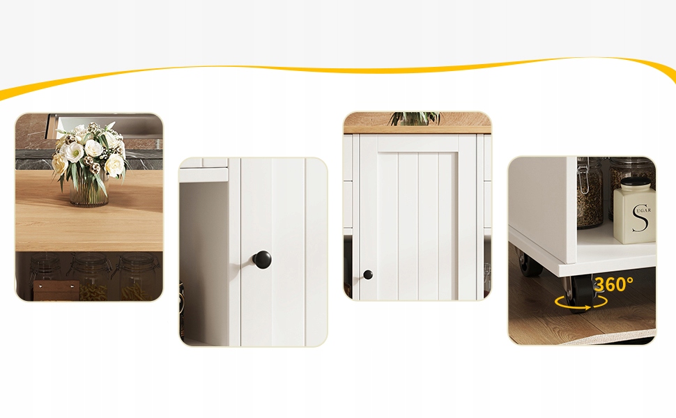 Боковые полки дополнительно увеличивают место для хранения, что позволяет хранить часто используемые предметы, такие как пищевая фольга, бумажные полотенца и бутылки специй, обеспечивая легкий доступ. Боковые полки стратегически расположены для поддержания эстетики острова, полностью использовать пространство и облегчить хранение. Подвеска для полотенец обеспечивает удобное место для полотенец, что позволяет высушить руки после приготовления или еды, сохраняя их чистыми и сухими, что увеличивает комфорт использования. В дополнение к хранению полотенец, вы также можете повесить на них небольшие аксессуары для очистки, увеличивая функциональность тележки.