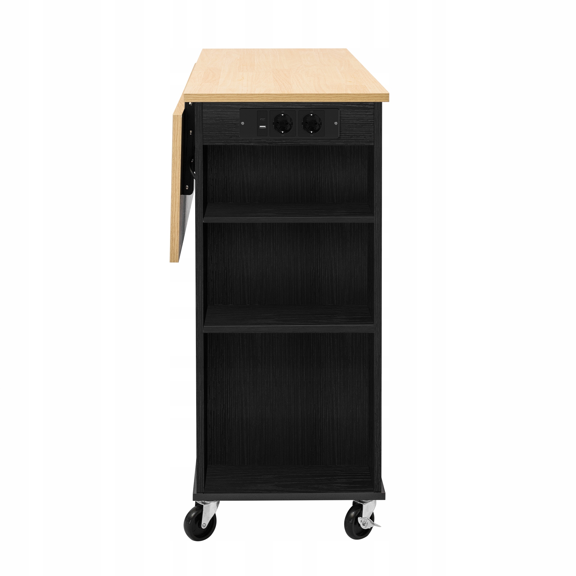 Кухонный остров на колесиках, раздвижной стол, с корзиной и вешалками (черный)
