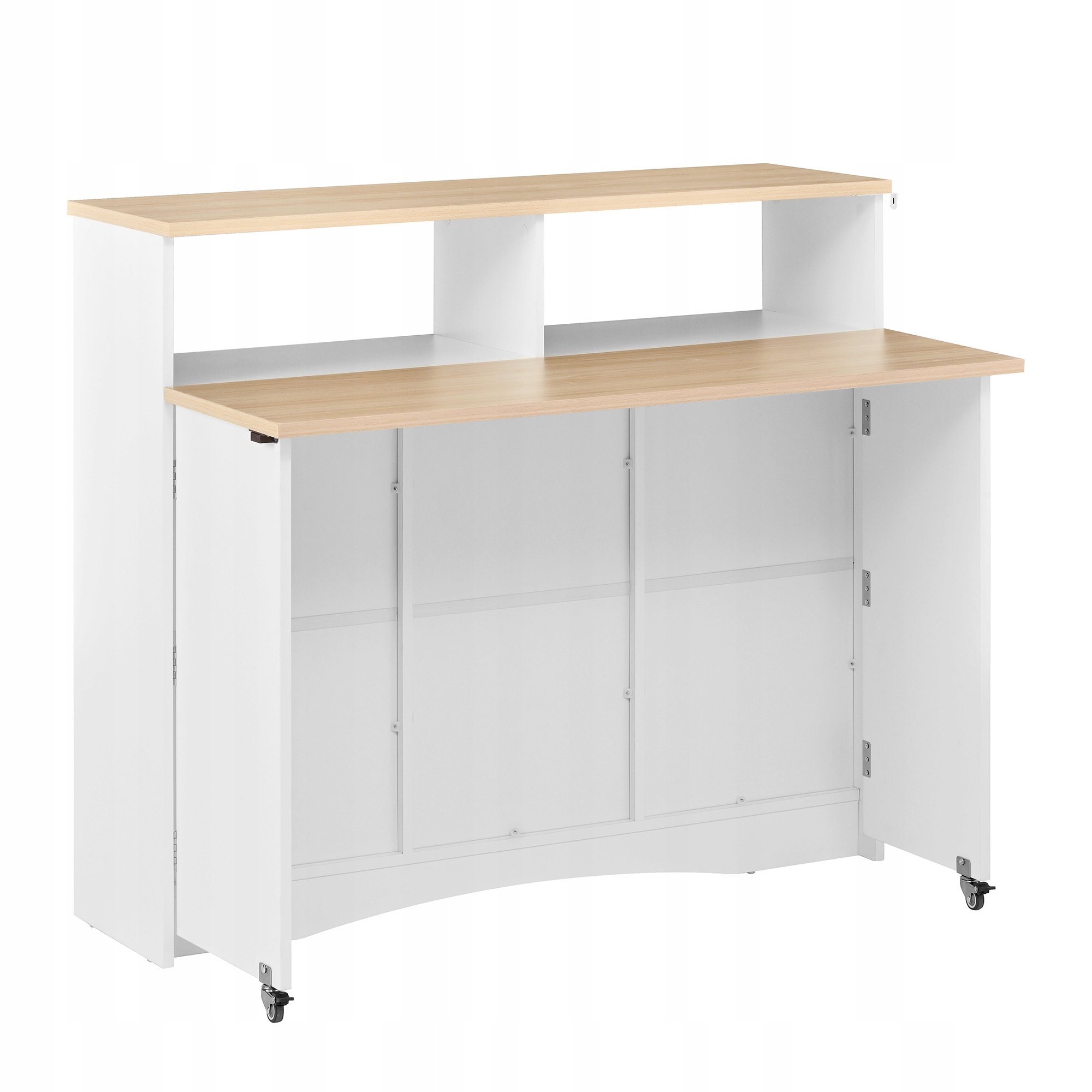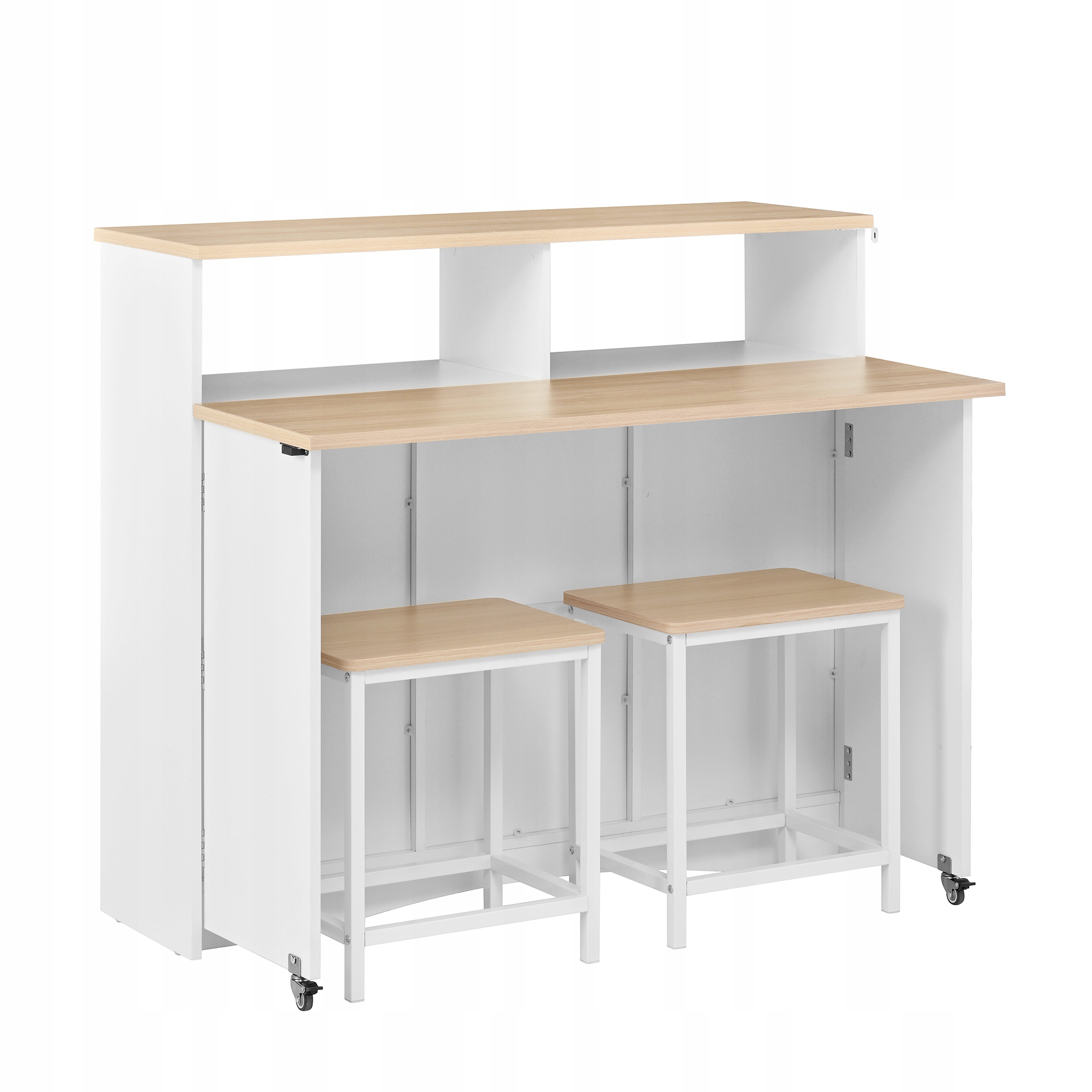 Просторный складной верх: этот кухонный остров, который также можно использовать в качестве кухонного острова, имеет складной верх. Складная панель (110 х 34 см, грузоподъемность 30 кг) крепится с помощью боковых опор и двух блокируемых колес. В комплект входят два табурета, которые позволяют вам работать или есть в удобном режиме. После использования просто сложите его, чтобы получить больше места и лучшую организацию.