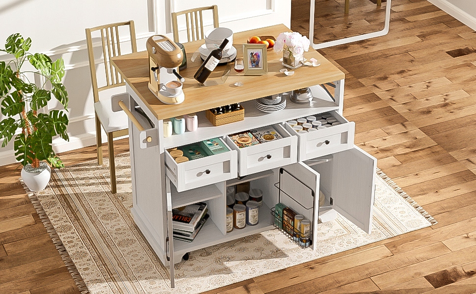 Улучшите свою кухню благодаря этому стильному и очень функциональному кухонному острову на колесах! Этот универсальный элемент, идеально подходящий для современных домов, сочетает в себе интеллектуальное хранение, мобильность и элегантный дизайн для улучшения впечатлений от приготовления пищи и употребления блюд.