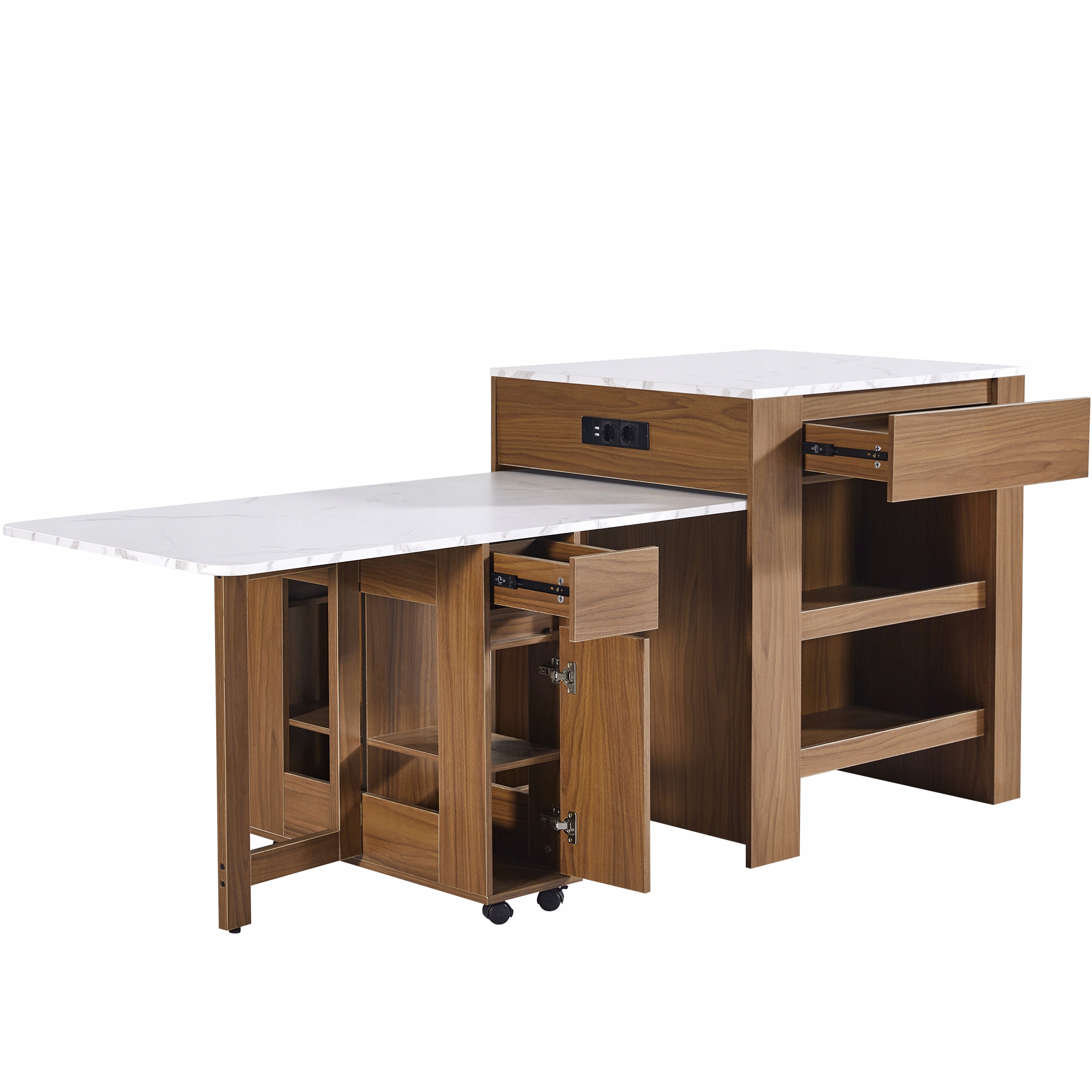 Революционизируйте ваше кухонное пространство благодаря этому в форме бара в виде острова, предназначенного для адаптации с компактного рабочего места 110 см до просторного рабочего места без усилий для столовой 214 CM для 4-6 человек. Идеально подходит для современных домов, комбинирует немецкую функциональность с эстетикой , вдохновленными скандинавским стилем в богатом ореховом орехе или выразительной белой отделке MDF.