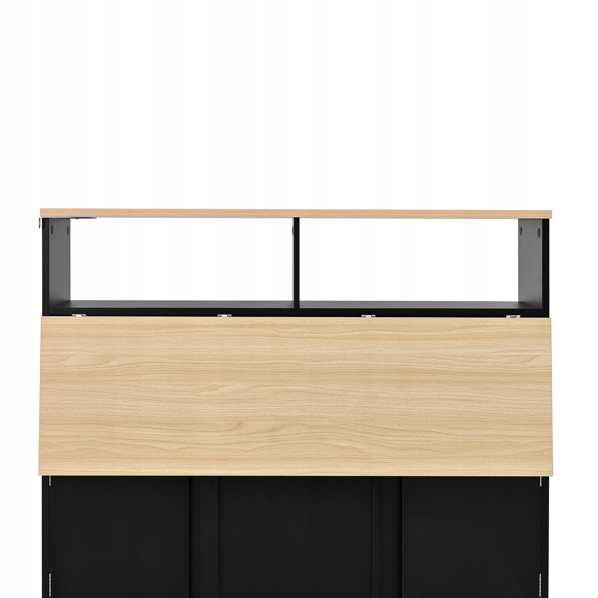 Гибкая компоновка, максимум места для хранения: Гармоничное сочетание открытых и закрытых мест для хранения максимально эффективно использует пространство, эстетично и легко доступно. Внутри многочисленные полки, регулируемые по высоте, позволяют гибко приспособиться к различным потребностям. Разделенное верхнее отделение вместе с тремя просторными зонами для хранения внутри предлагает достаточно места для декоративных предметов, еды, напитков, посуды и многого другого.