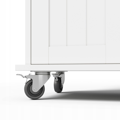 Оснащена 5 роликами с плавным ходом, в том числе 2 роликами с блокировкой, для легкой мобильности и надежного размещения. Качественные резиновые колеса защищают пол от царапин и обеспечивают бесшумное движение.