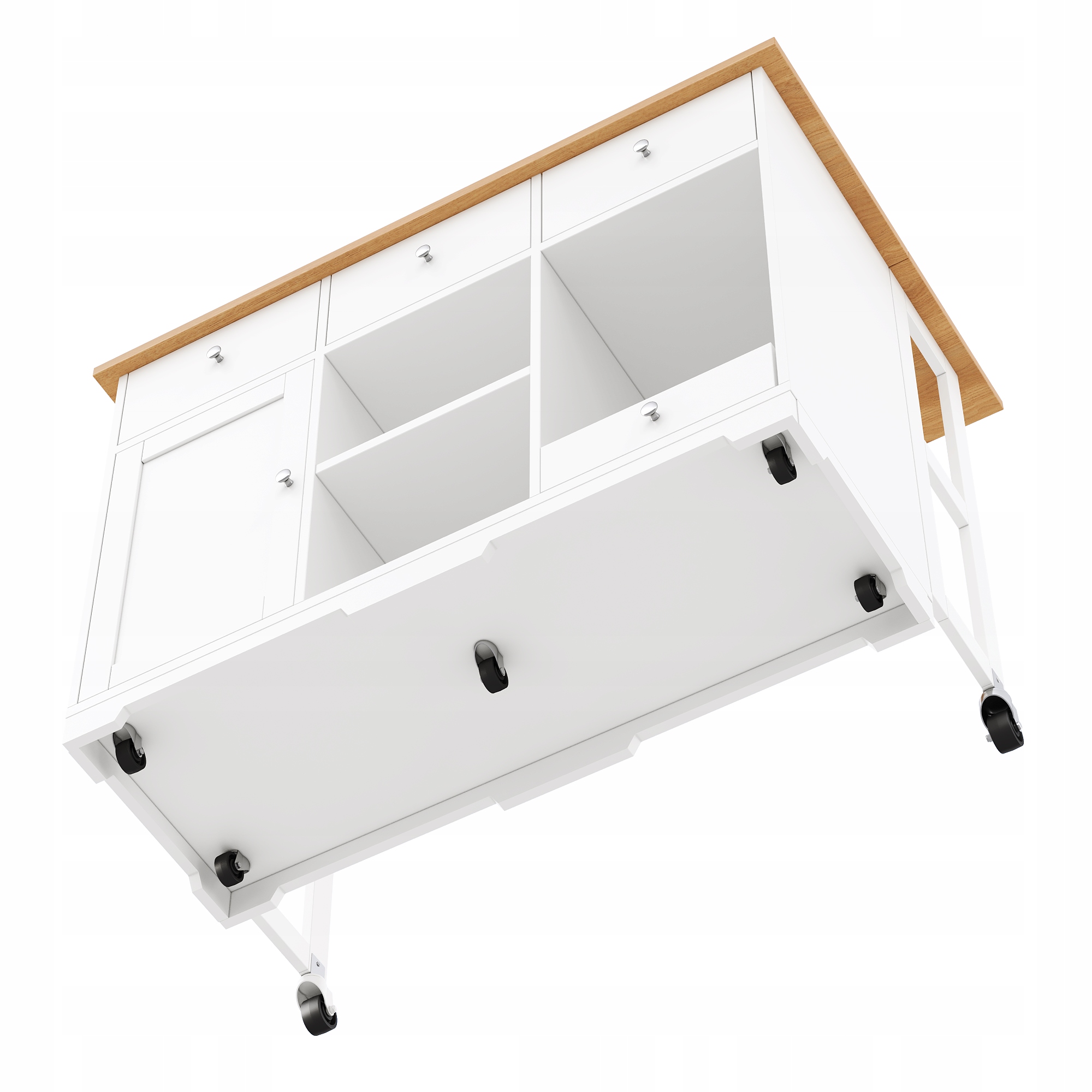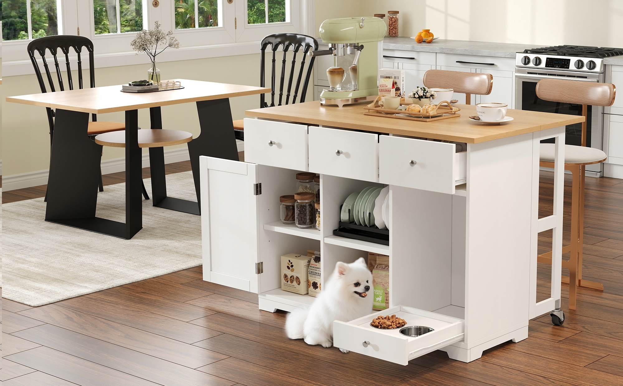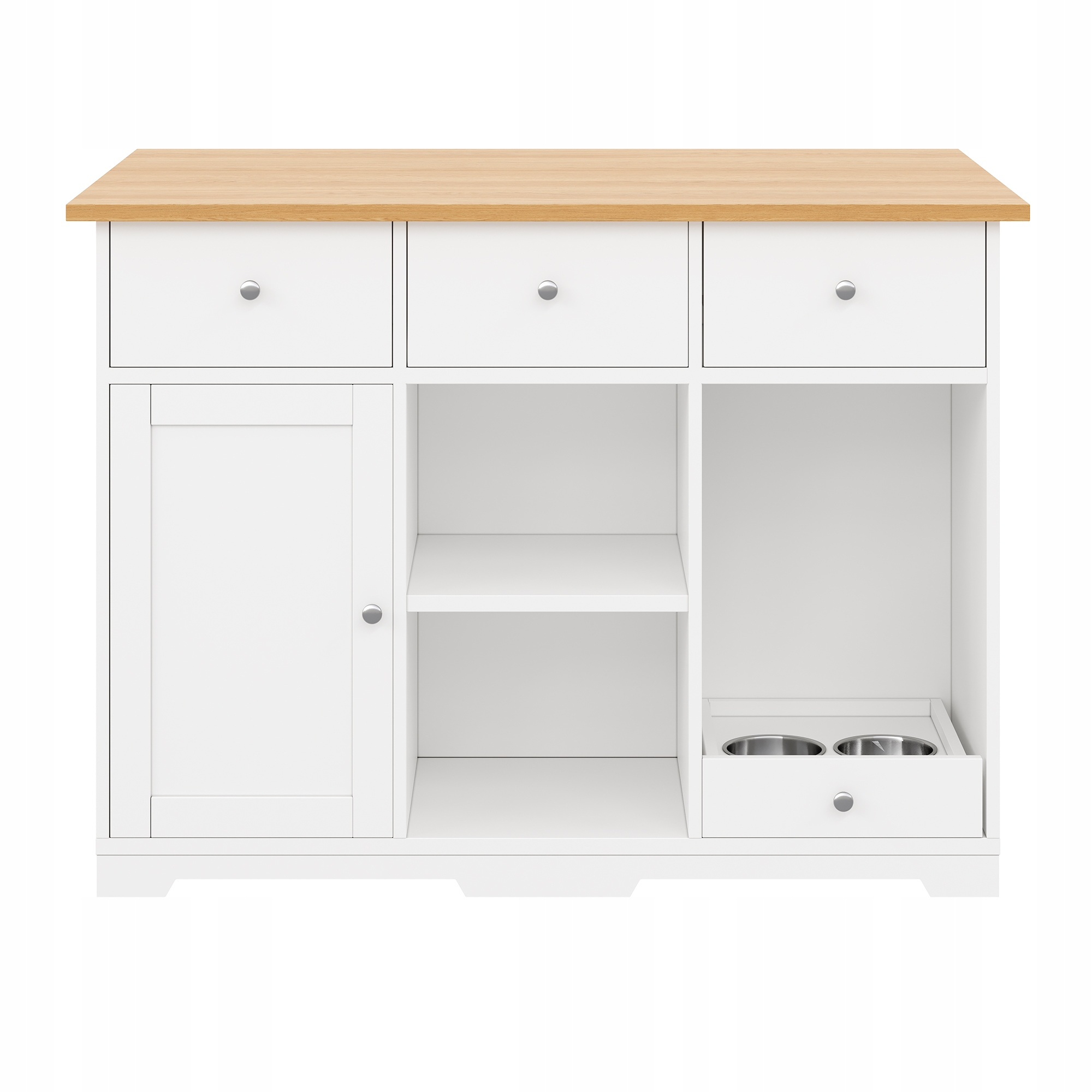 Кухонная тележка, мобильная сервировочная тележка, кухонный остров с выдвижным ящиком, кухонный шкаф с миской для домашних животных/местом для еды домашних животных, 120*70*90 см, белый