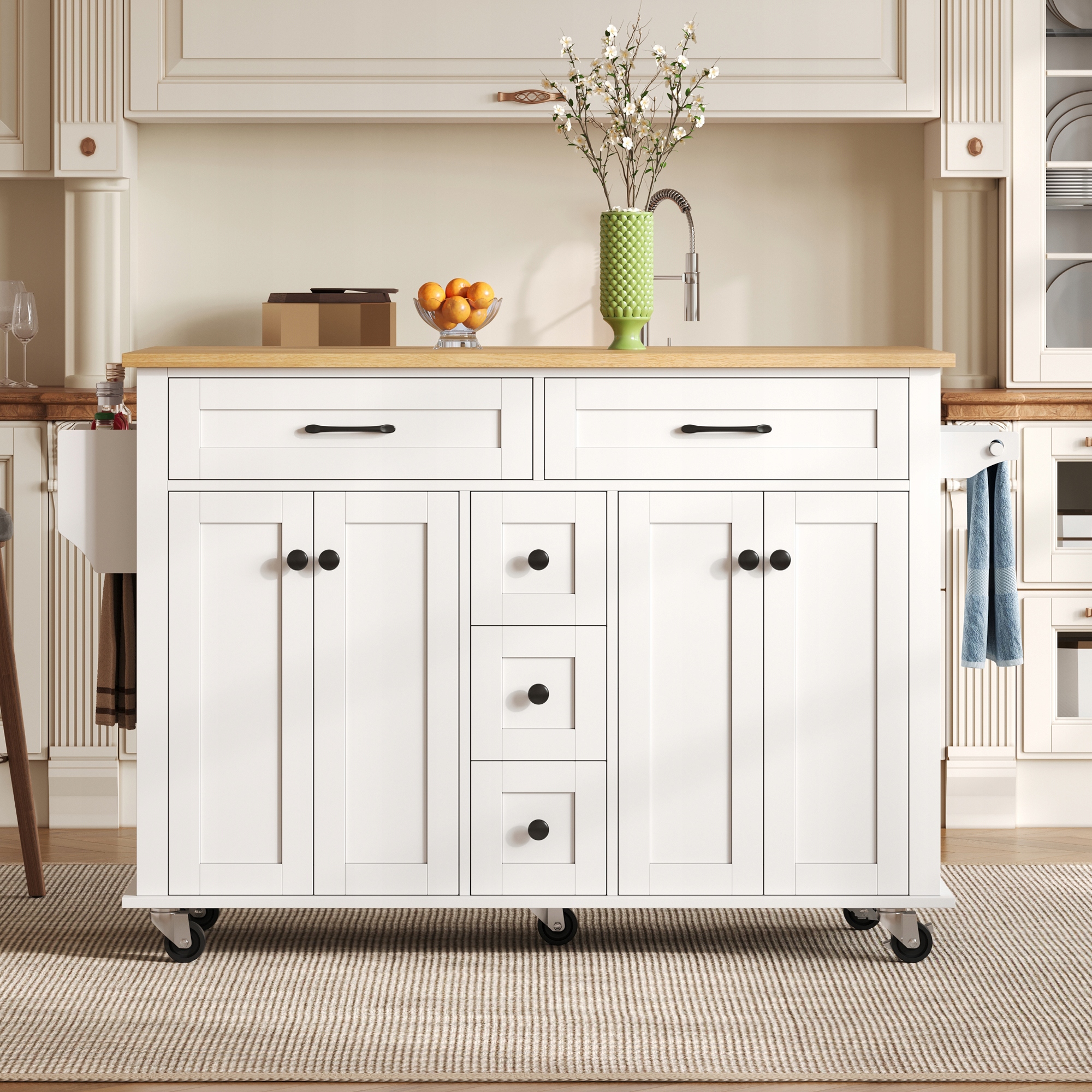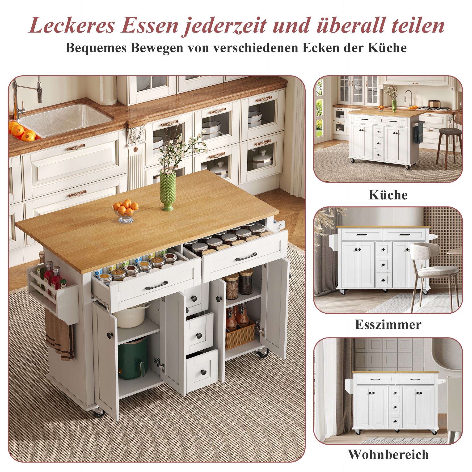Многофункциональная тележка для кухонного острова с выдвижной столешницей – стильная и практичная для современного дома