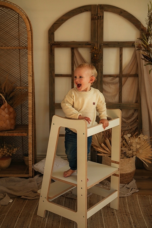 Благодаря трем уровням регулировки платформа идеально подходит как для маленьких детей, которые только начинают самостоятельно стоять, так и для поваров постарше, 5-летних.