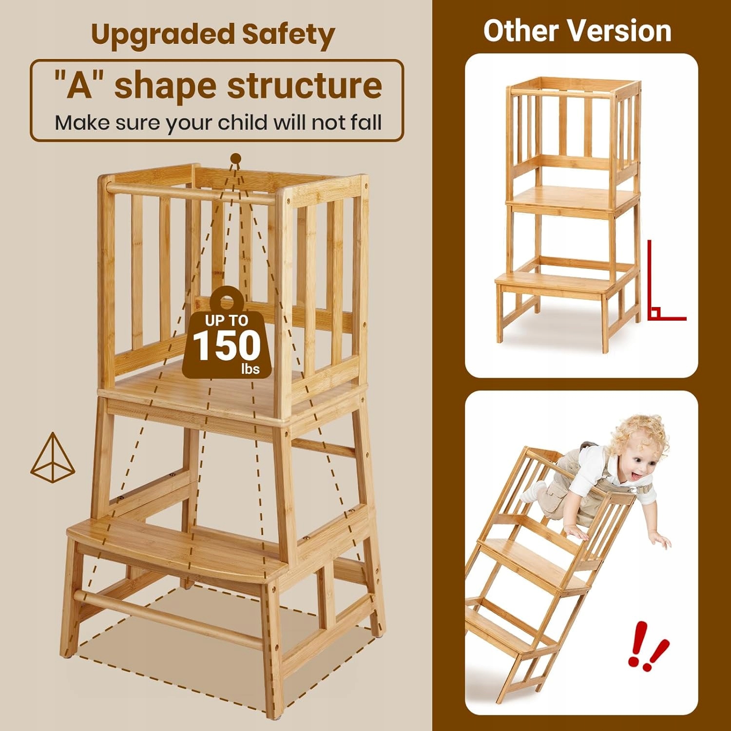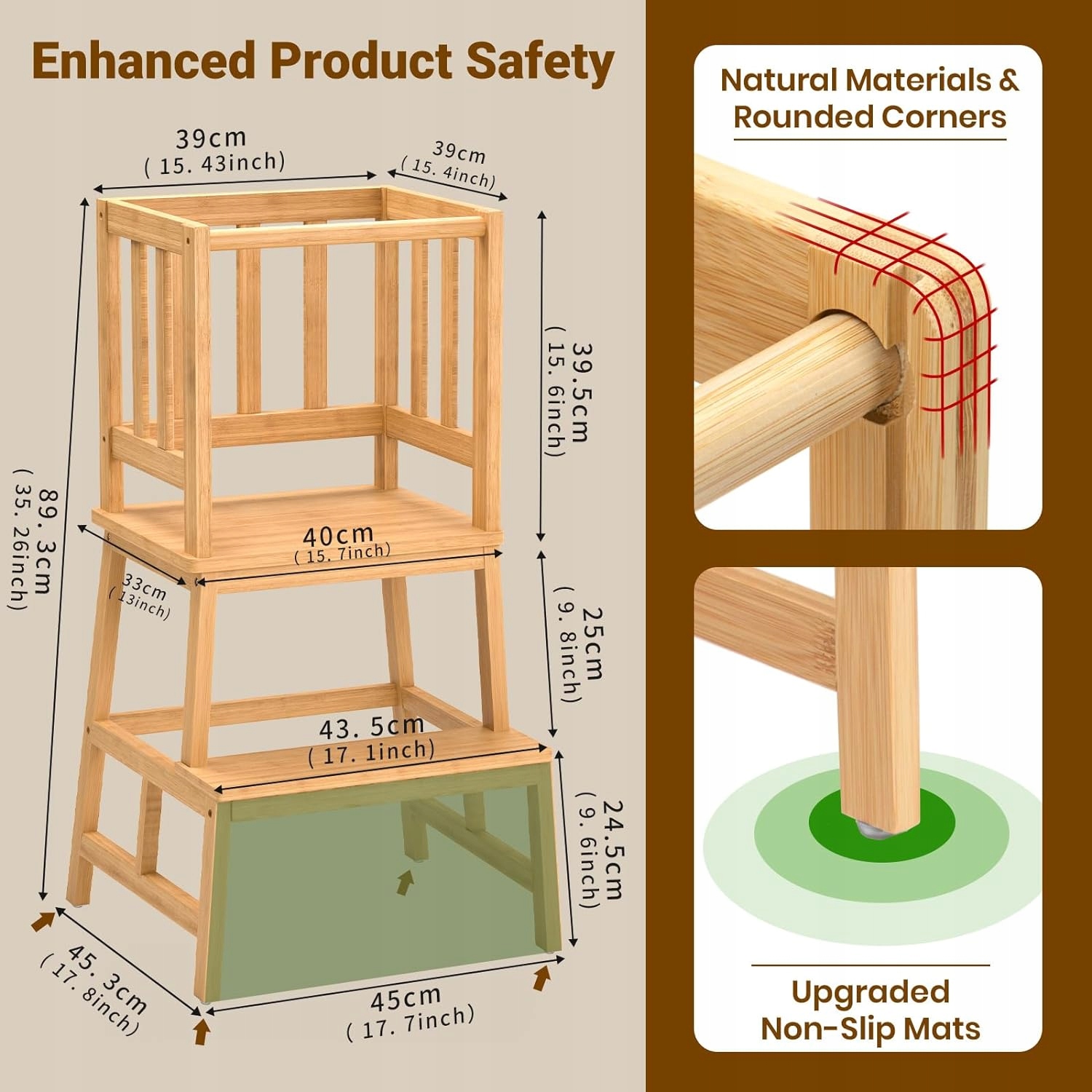 - Эта башня для обучения с 1 года изготовлена из натурального бамбукового материала, который является более долговечным и структурным, чем обычный пластик или древесина, и осторожно покрыт гладким, прочным, нетоксичным, развязанным покрытием.