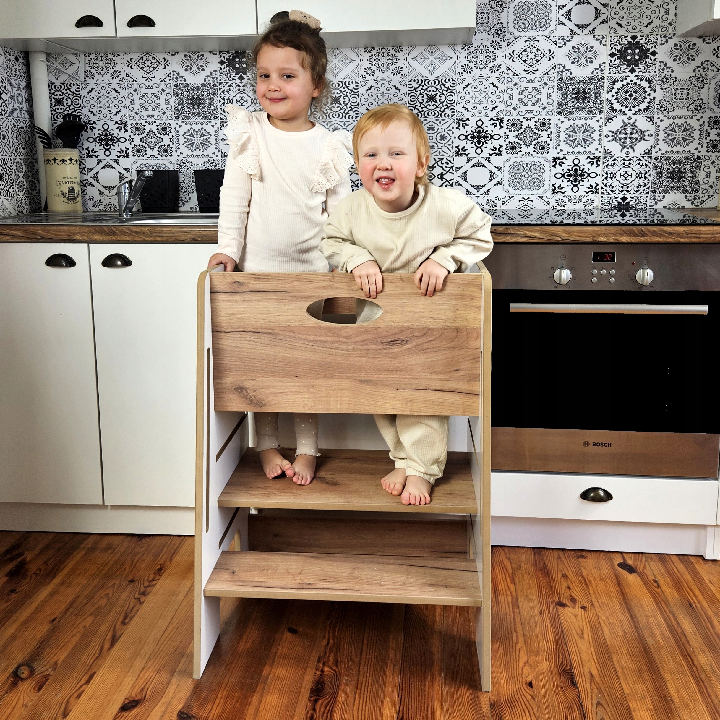 Наш chitchen helper - это твердый продукт, который полностью произведен в Польше . Мы построили его из ламинированного MDF, делая его стабильным и безопасным. Целое было вручную закончено, так что ни один острый край или выступающий Скол не угрожает малышам.