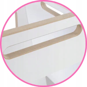 Толщина плиты 18мм, материал МДФ. Все деревянные элементы мы защищаем лаком соответствующим стандартам PN-EN 71-3 и PN-EN 71-2.