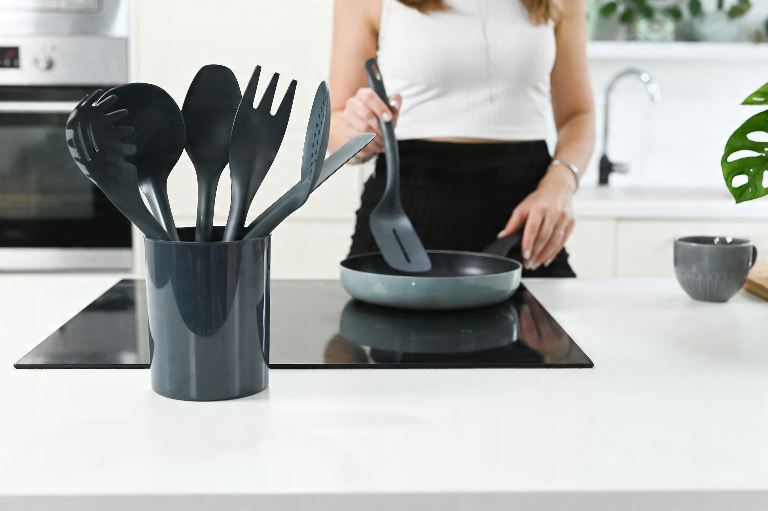 ✅ Полный набор - набор из 5 кухонных посуды в практическом контейнере, обеспечивая легкий доступ к наиболее необходимым кухонным инструментам. b> Цвет: черный