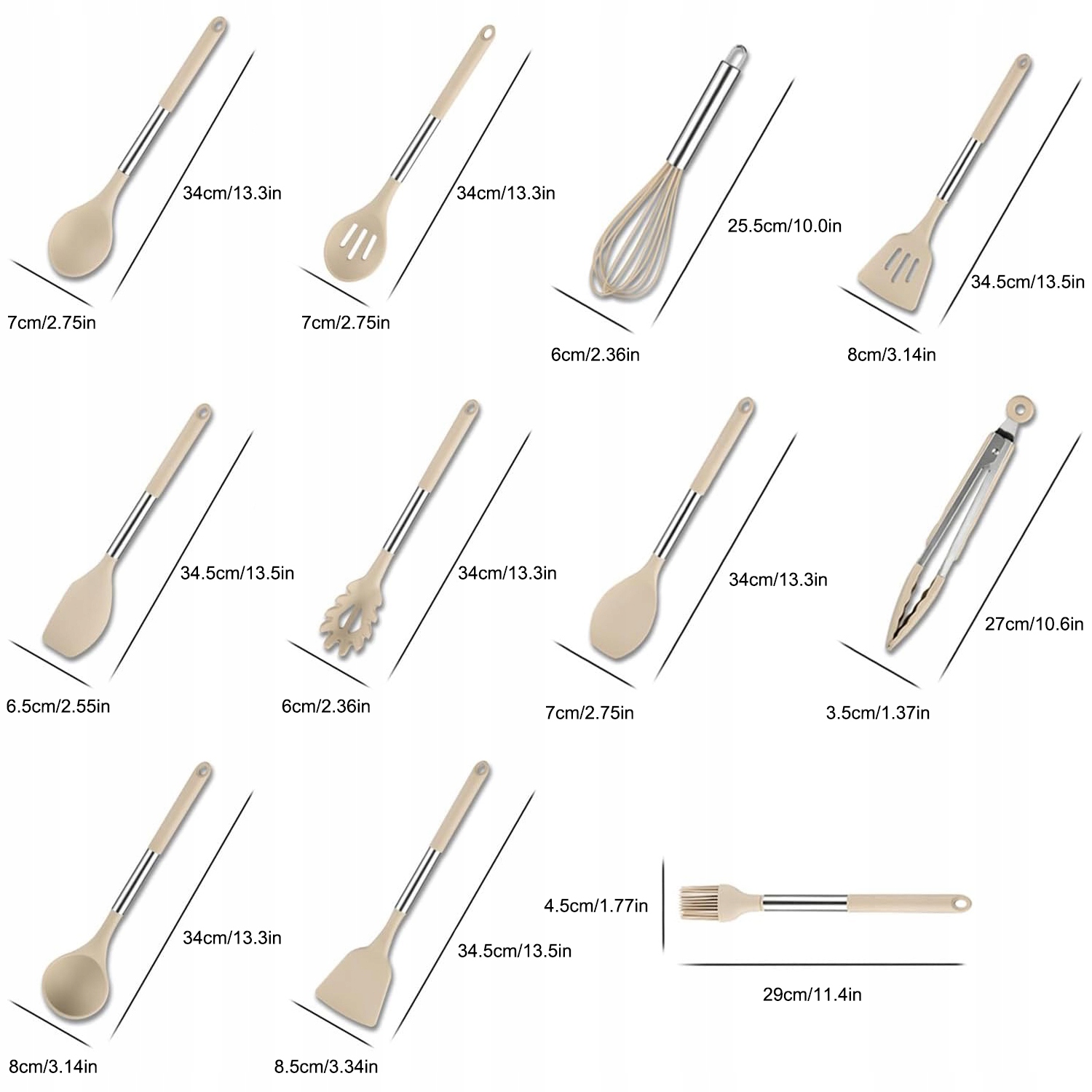 Кухонная посуда Силиконовая ложка Аксессуары из нержавеющей стали 12 ПК