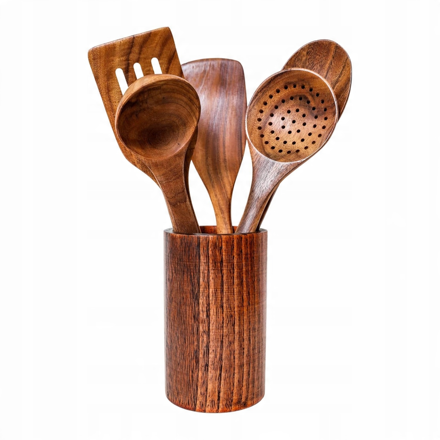 Кухонная посуда установите деревянные кухонные утварь с ручкой для аксессуаров