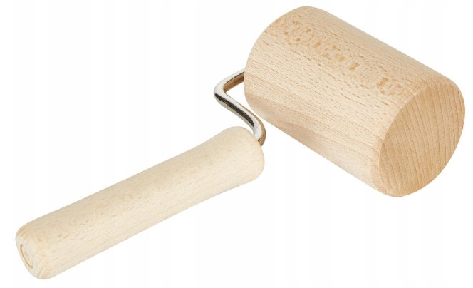 Деревянная скалка с ручкой. Его используют, например, для выравнивания теста, помещенного в форму для выпечки – благодаря этому тесто получается одинаковой толщины. Его также можно использовать как скалку для раскатывания теста.
