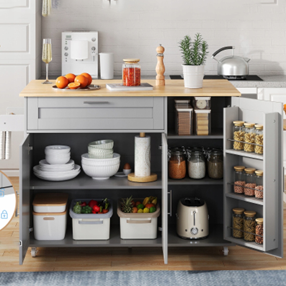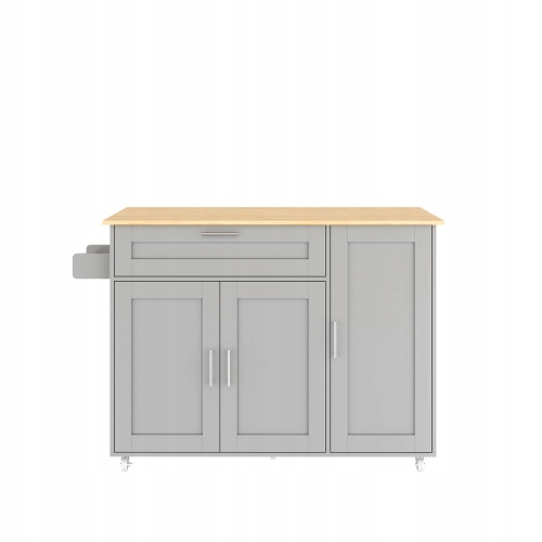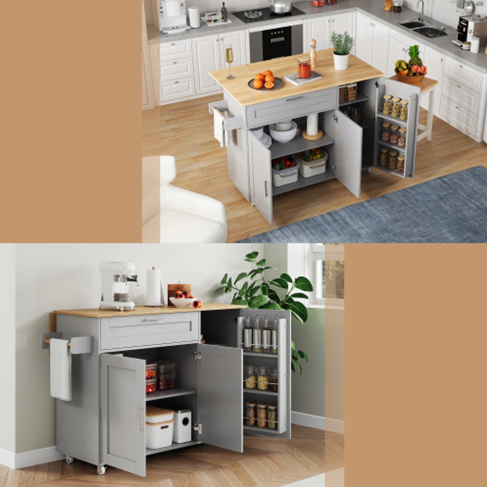 Кухонная тележка имеет вместительный ящик, регулируемые полки и практичную дверцу. Дополнительно оснащен боковыми полками для специй, что облегчает организацию пространства. Идеально подходит для хранения столовых приборов, кастрюль или бытовой техники.🍲🍶🍅