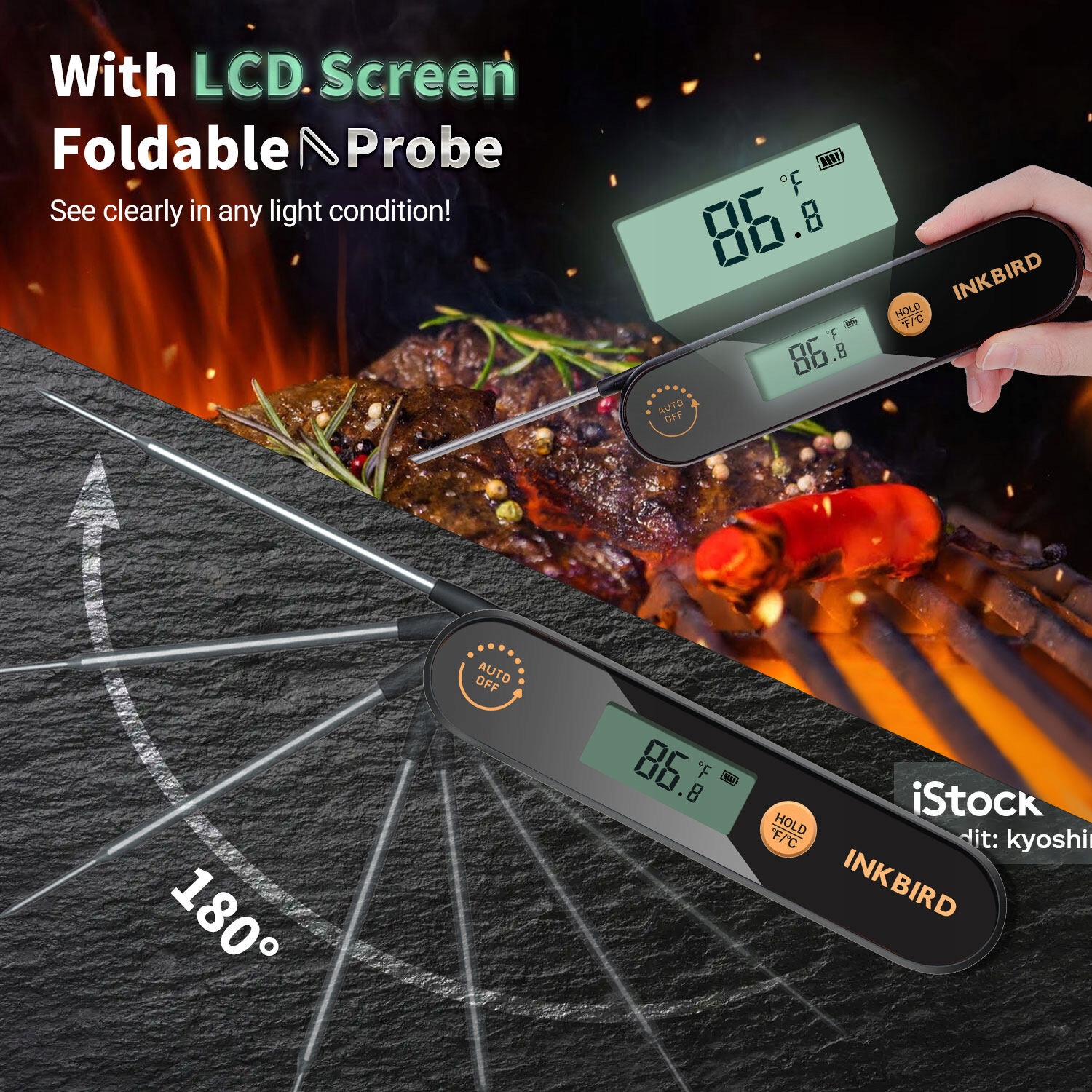 ✅ Простота эксплуатации и удобное хранение: складной термометр прост в использовании: откройте его, чтобы включить устройство, и сложите зонд, чтобы выключить его. Складная конструкция и внутренний магнит делают хранение удобным, форма меньше, чем у тех, которые не складываются, а магнитная задняя часть позволяет адсорбировать его на поверхности бытовой техники, такой как духовки, холодильники или другие металлические поверхности, которые вы хотите.